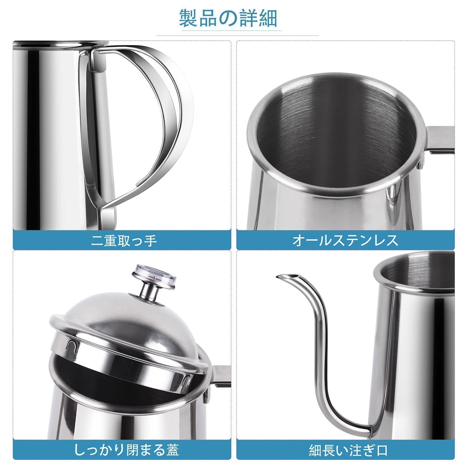 コーヒードリップポット ステンレス コーヒーポット きドリップケトル 650ML 細口ポット シルバー