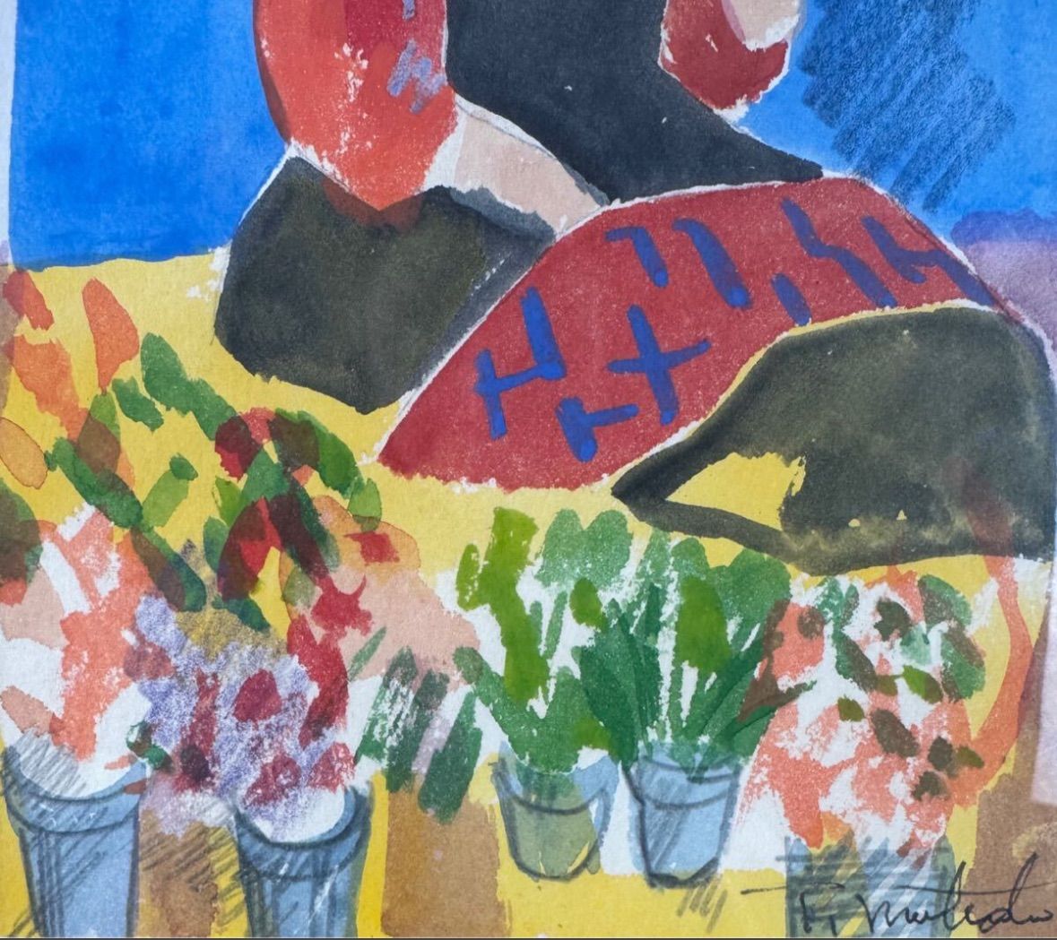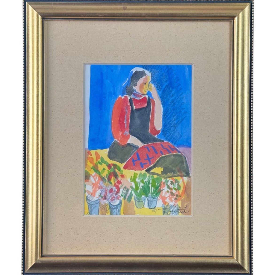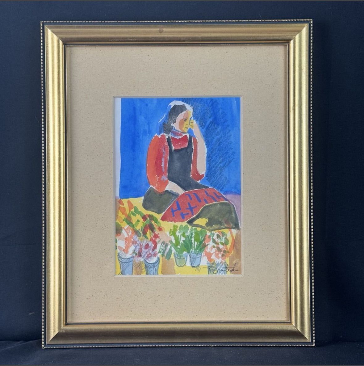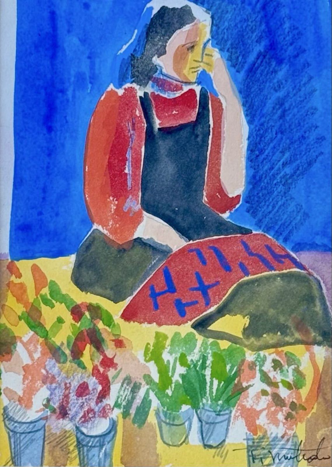 松田環 「花と少女」水彩 名古屋画廊取扱作品 師 笠井誠一 立軌会同人 愛知芸大大学院修 人気作家