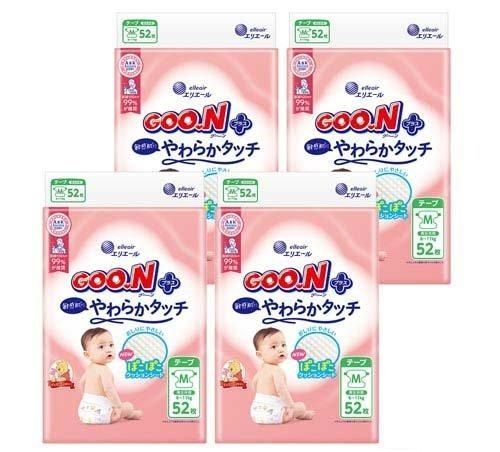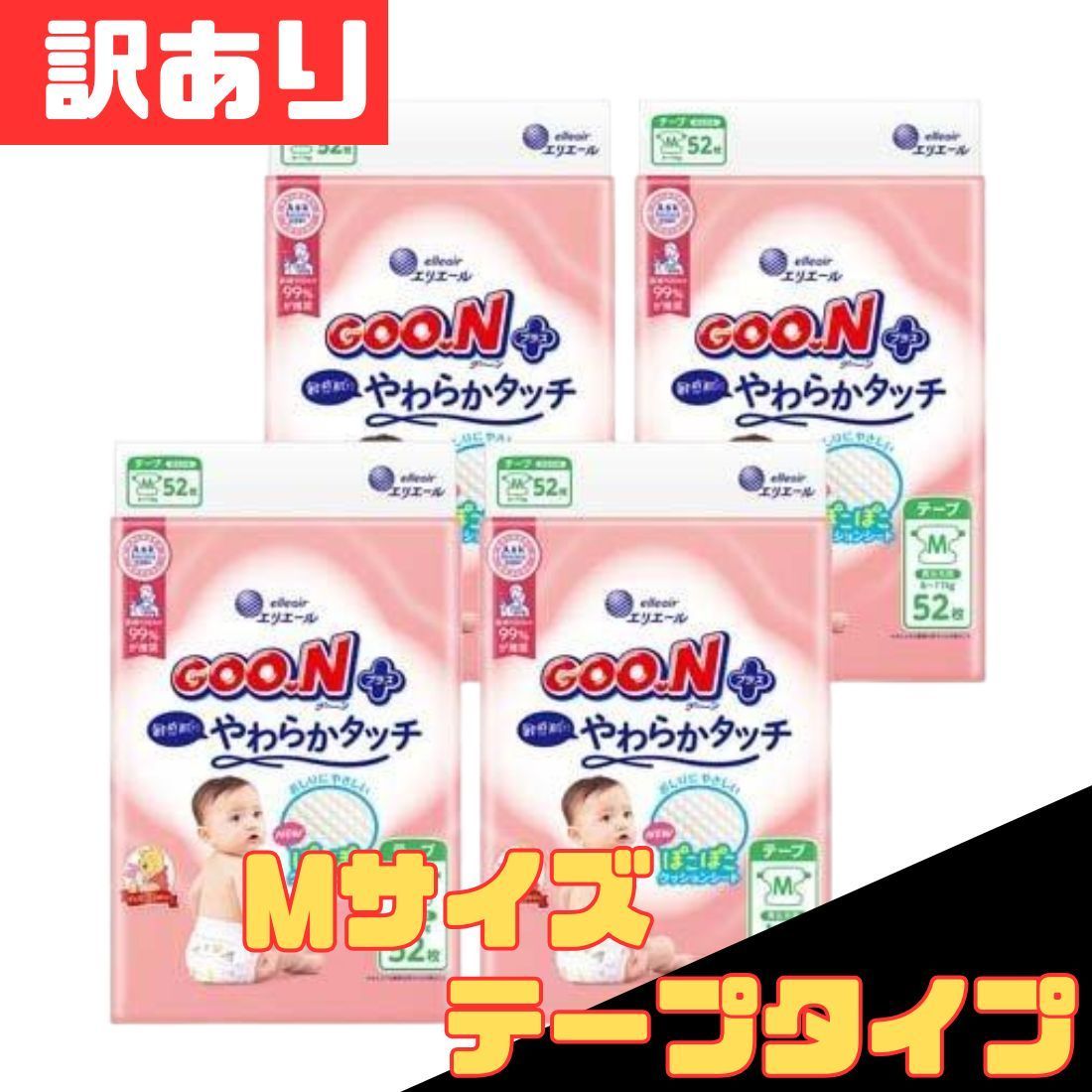 訳あり グーンプラス テープ 敏感肌にやわらかタッチ 敏感肌 Mサイズ 6〜11kg 208枚入(52枚×4P)テープタイプ 紙 おむつ オムツ お得 格安 爆買 セール まとめ買い 1ケース【北海道/沖縄/離島発送不可】