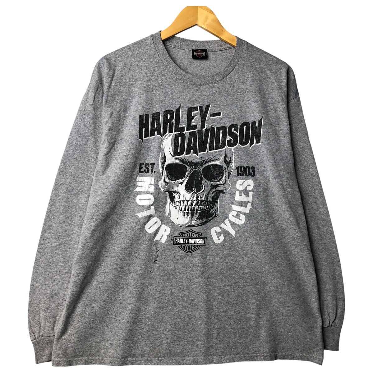 商品名:古着 ハーレーダビッドソン Harley-Davidson ドクロ柄 スカル柄 ロングTシャツ ロンT メンズXL相当 /eaa603563