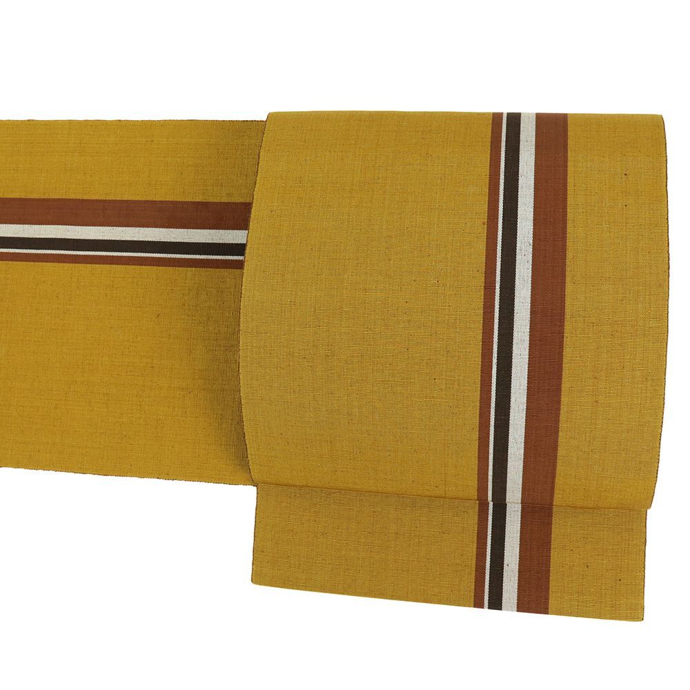 【 中古 】 名古屋帯 黄八丈 中古 正絹 ベージュ 黄茶 縞 仕立て上がり カジュアル お洒落 八寸名古屋帯 No.i6-2494