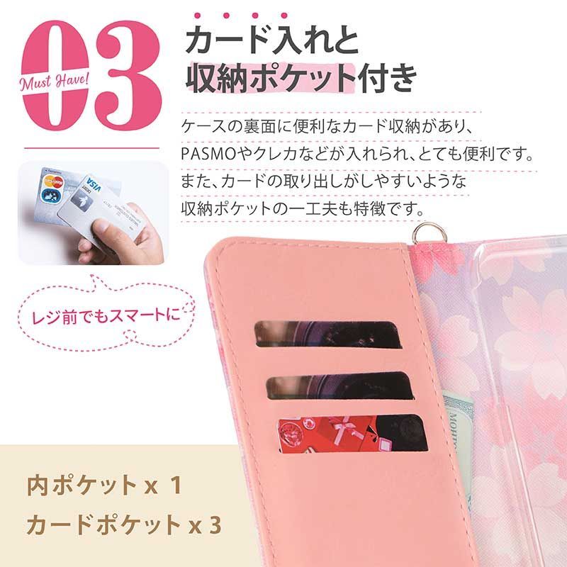 カバー裏面にカード収納があり、ICカードや名刺などを収納することが可能です。