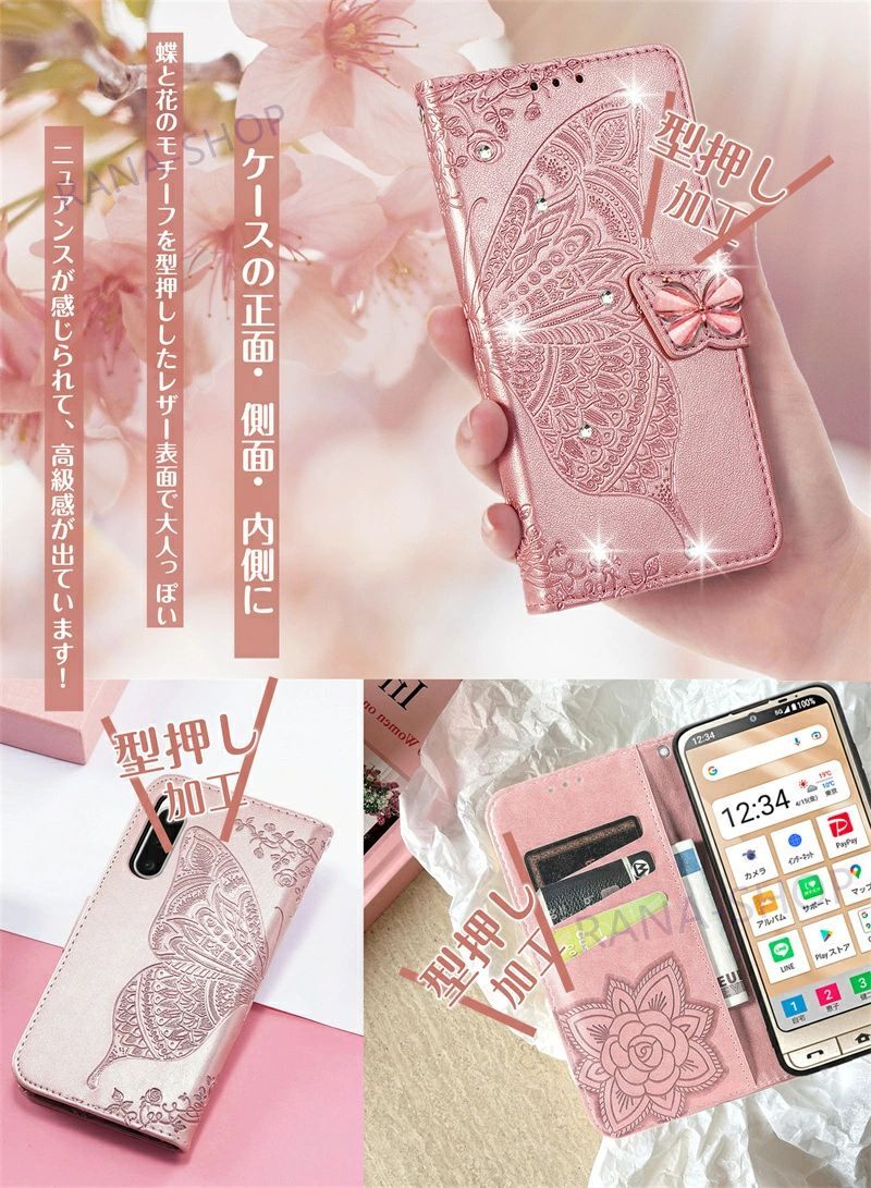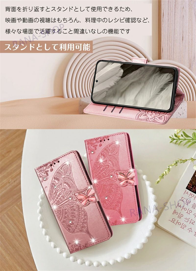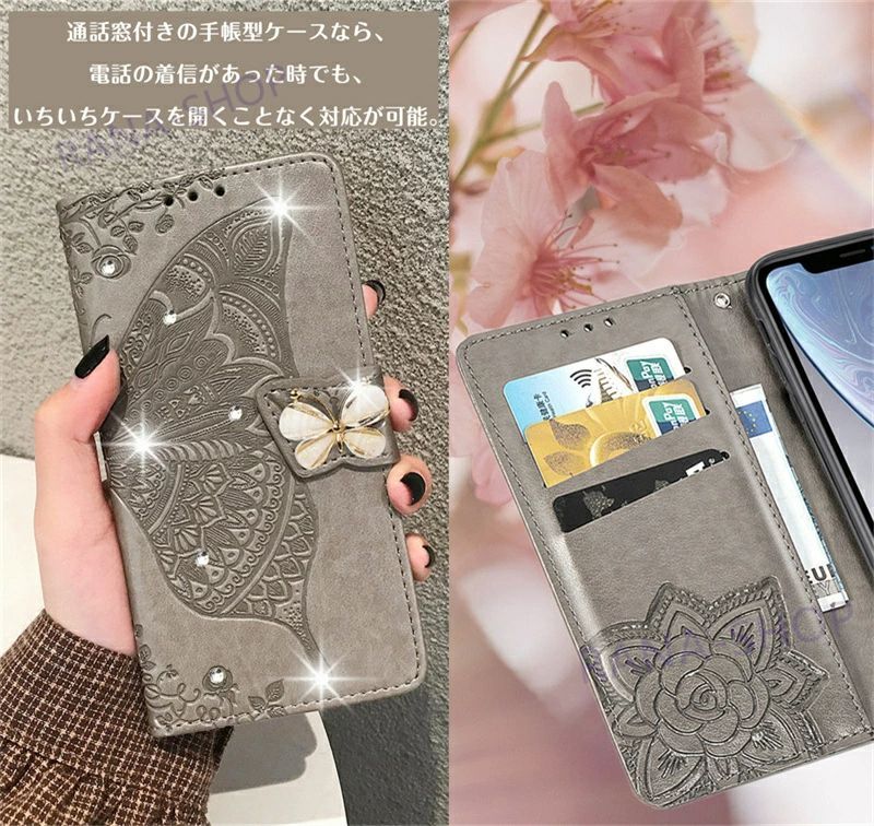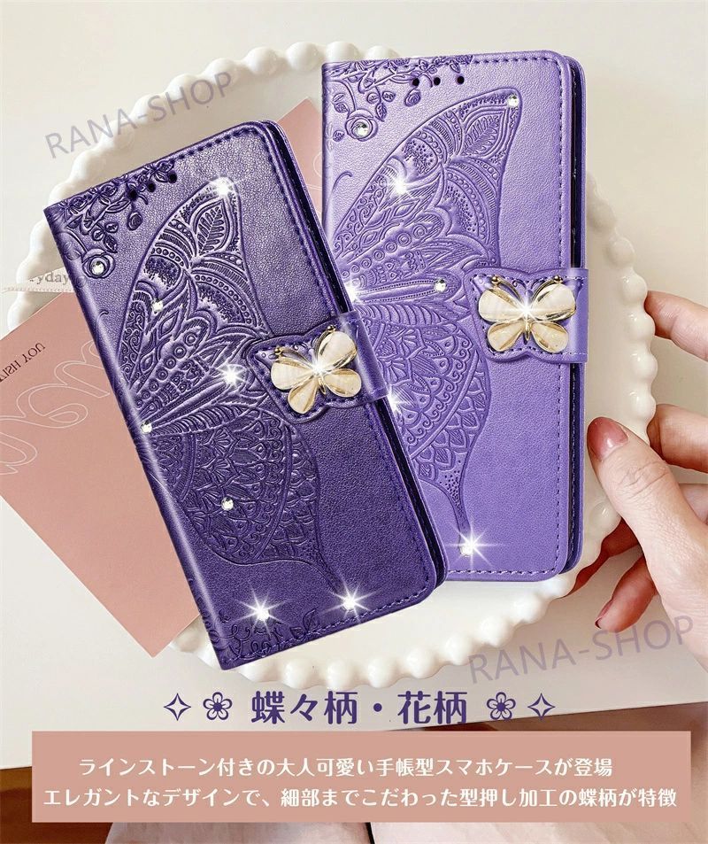 1、大きい蝶柄を存分に楽しめるスマホケースが登場。エレガントなデザインで、大人っぽい輝きの蝶な形のビジューが特徴。