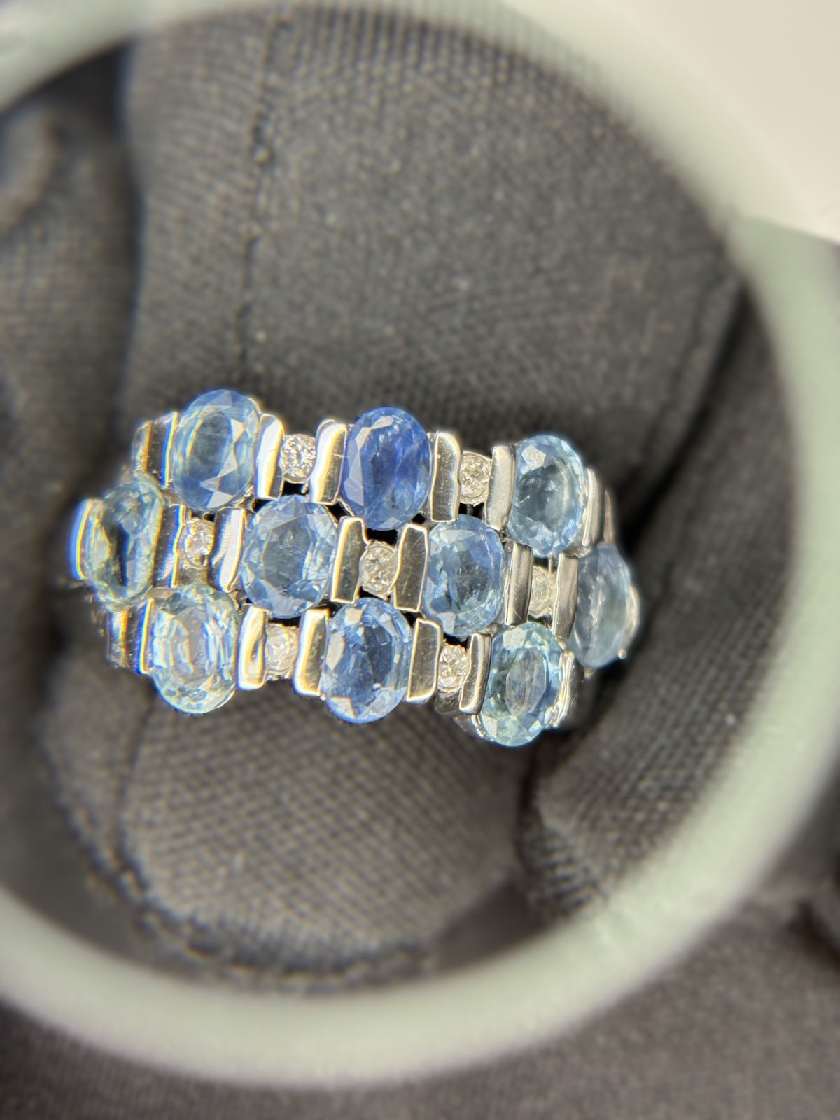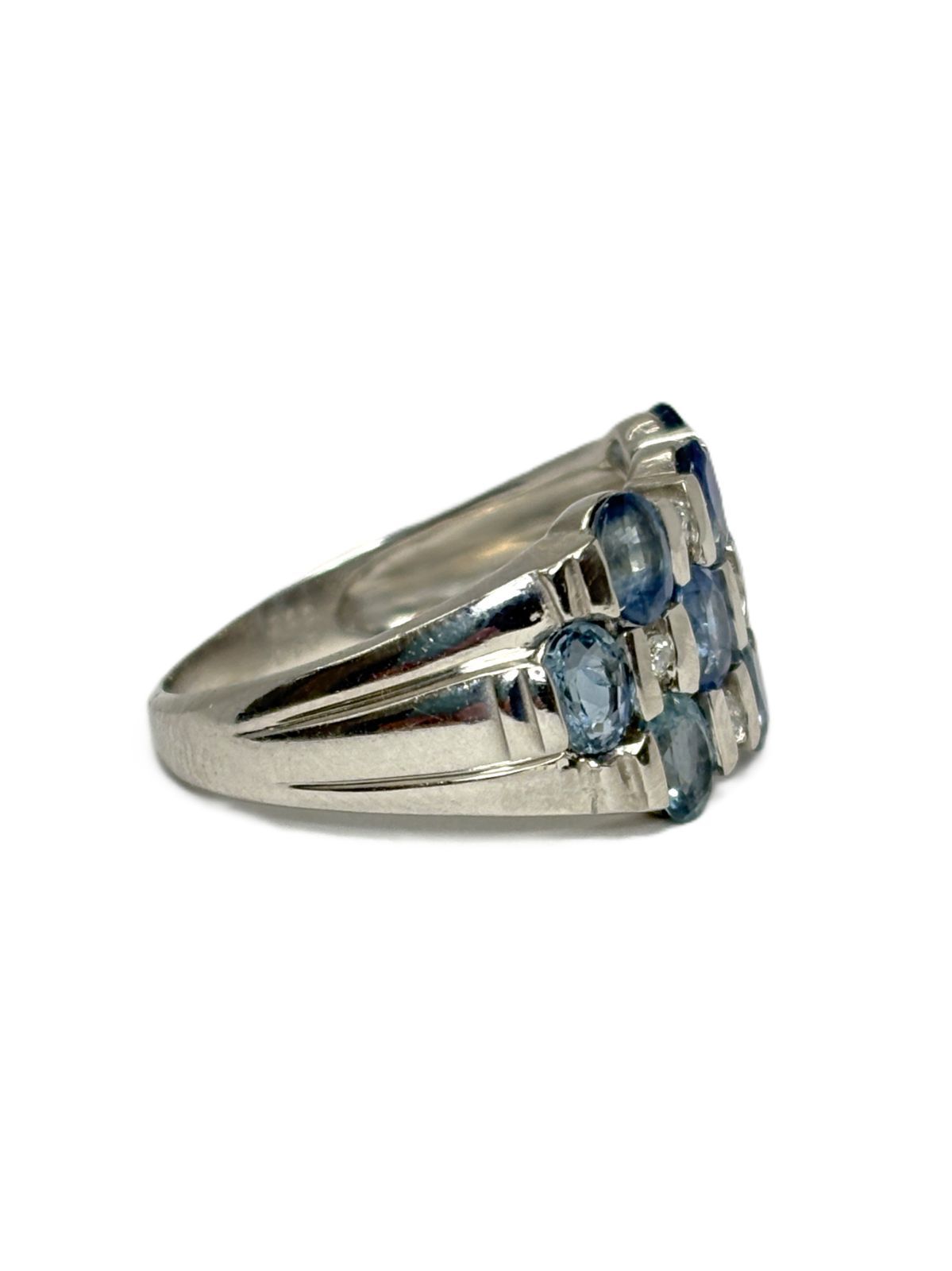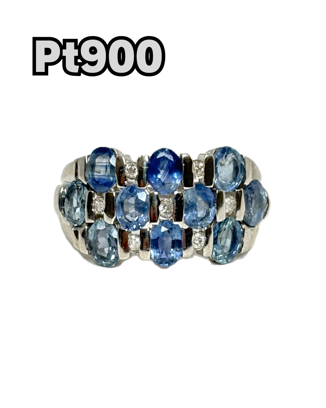 【Pt900】リング 指輪 ブルーストーン 青石 マルチ ダイアモンド入り 11号 6.8g