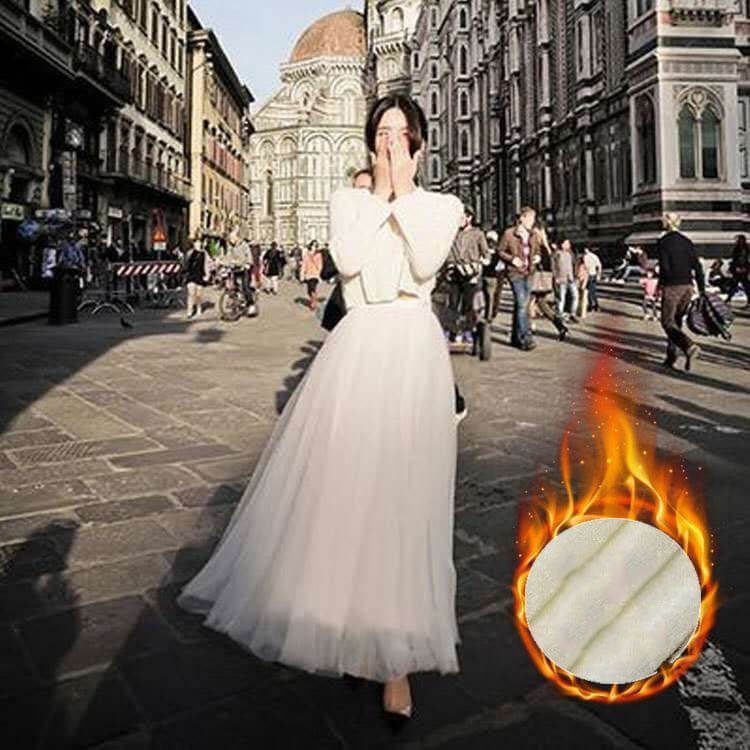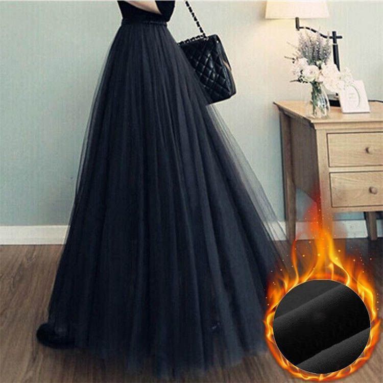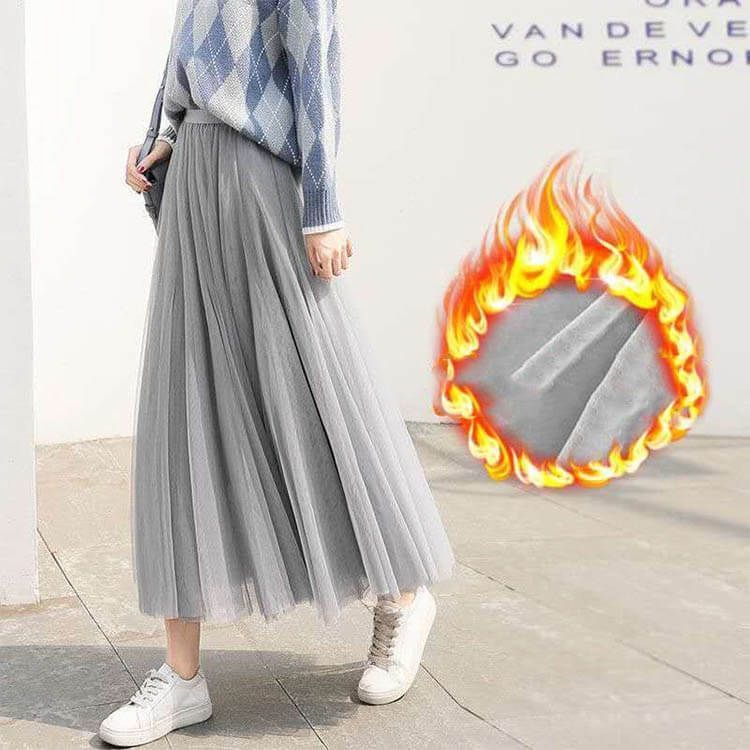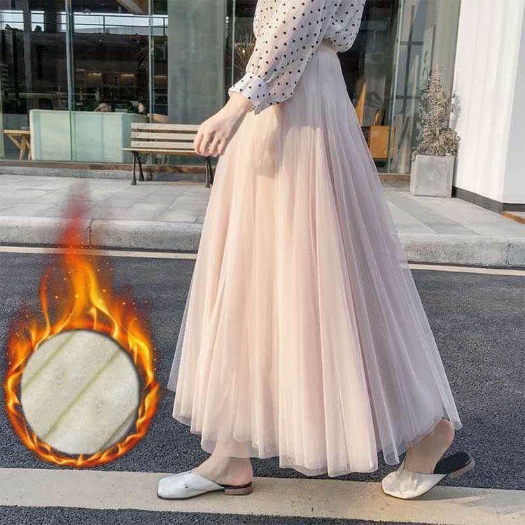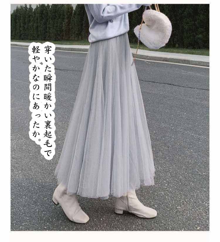 1枚で秋冬が暖かいフリース裏地付きチュールスカート。