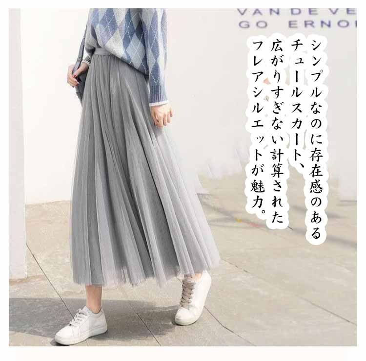 シンプルなのに存在感のあるチュールスカート、広がりすぎない計算されたフレアシルエットが魅力。