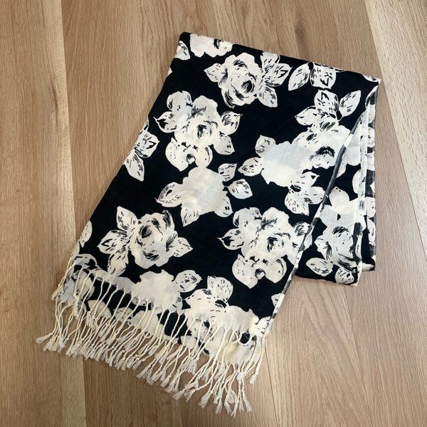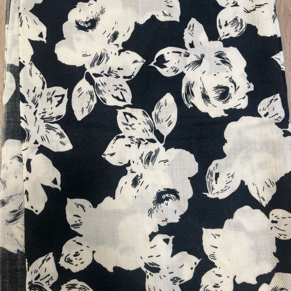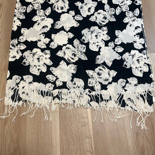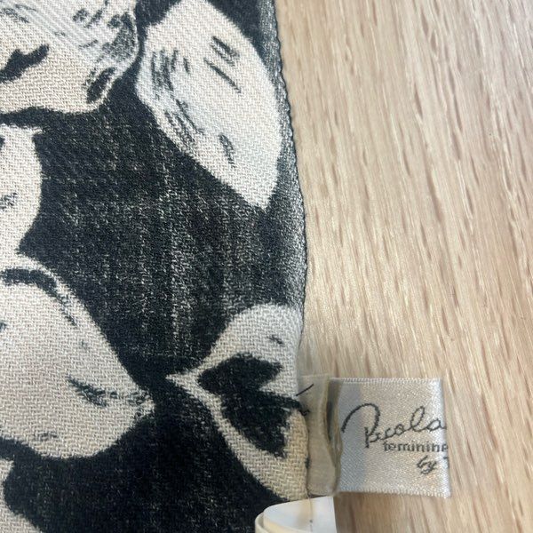 【228256】piccola conte by TGM ピッコラコンテ フリンジマフラー レーヨン100% 花柄 レディース小物 ホワイト/ブラック