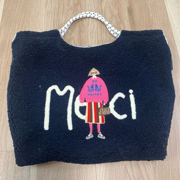 【227901】 【market SH】 ボアファー トートバッグ ワッペン レディース カジュアル ネイビー