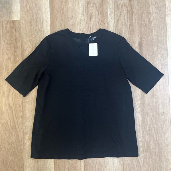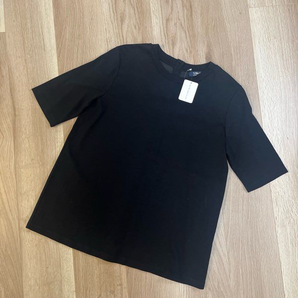 【228292】S Max Mara エスマックスマーラ 半袖ニット サマーニット レーヨン ストレッチ タグ付き 後ろボタン留め S ・ ブラック