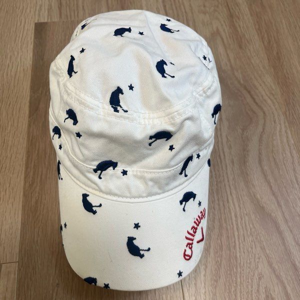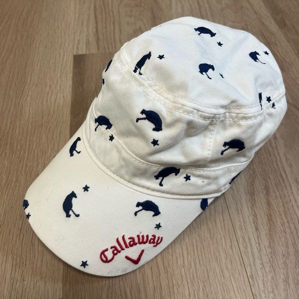 【商品名】キャップ 帽子 コットン100% ゴルフ 動物柄 ロゴ レディース フリー(55-57cm)