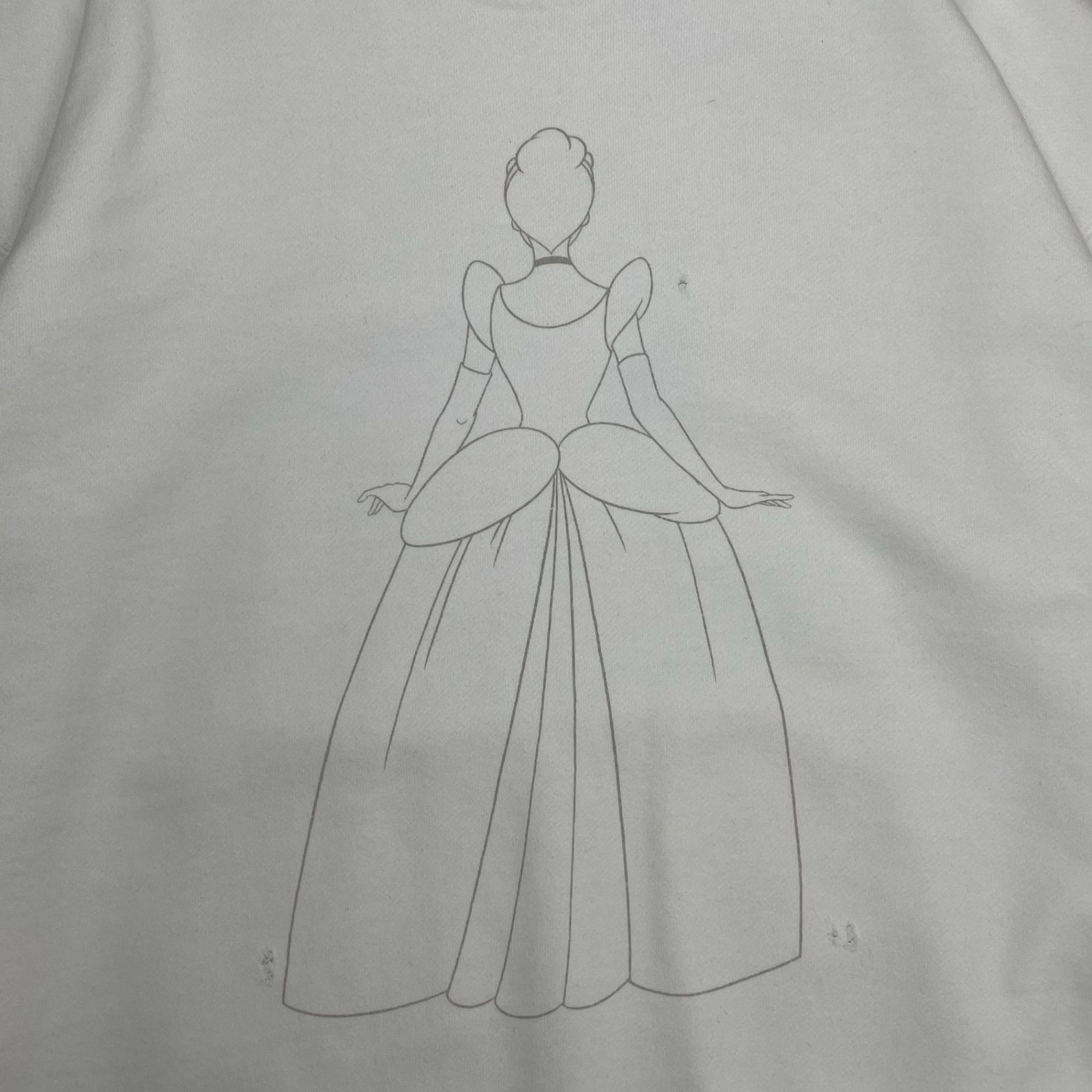 スタッフコメント:シンデレラの後ろ姿をライトグレーのシンプルな線画で表現した一着。