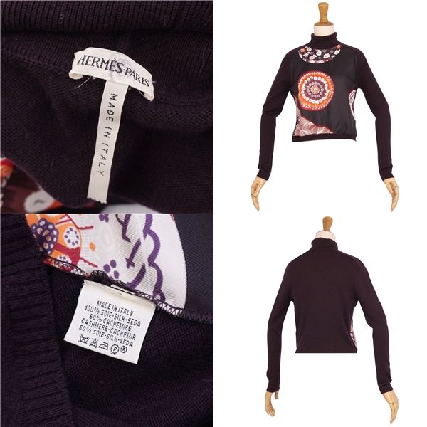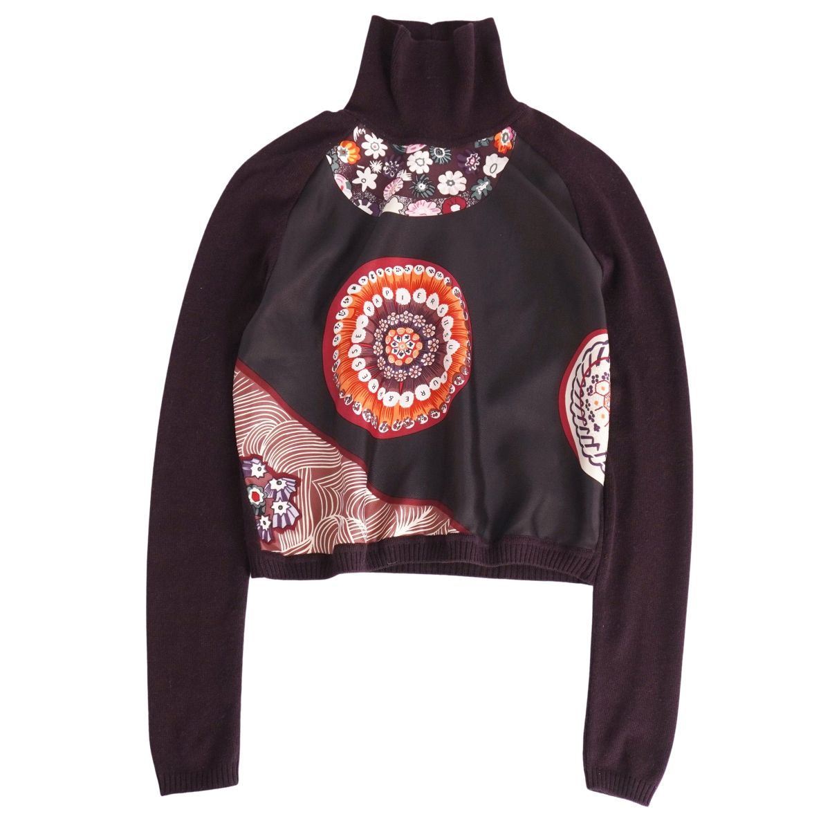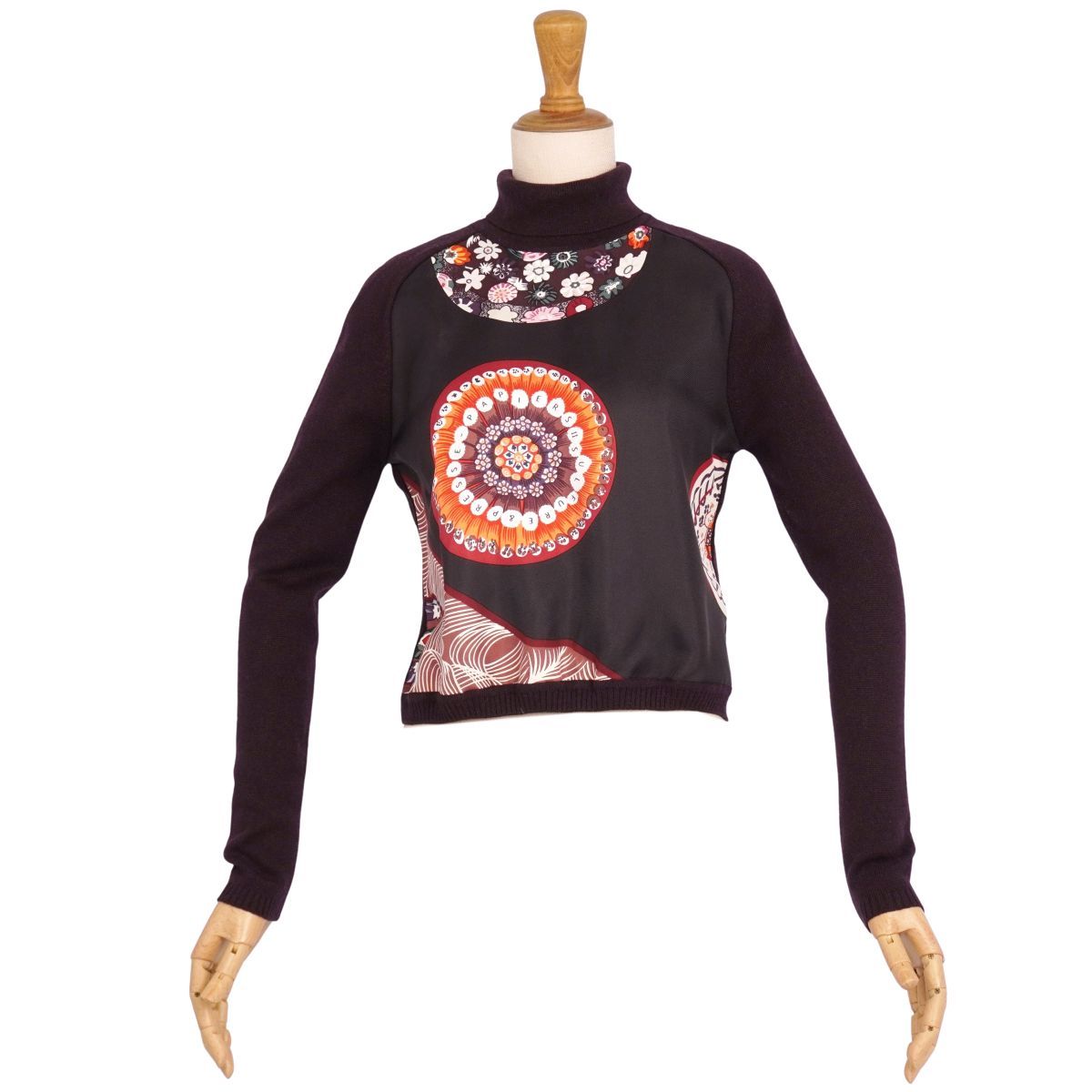 美品 エルメス HERMES ニット マルジェラ期 セーター シルク切り替え 総柄 トップス レディース XS ダークパープル