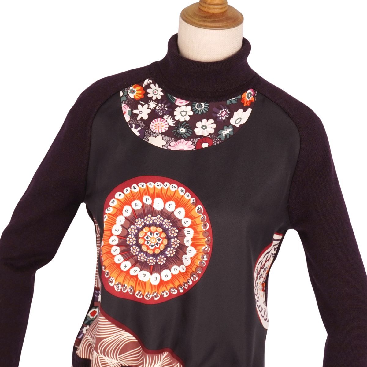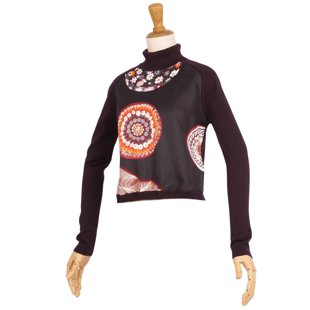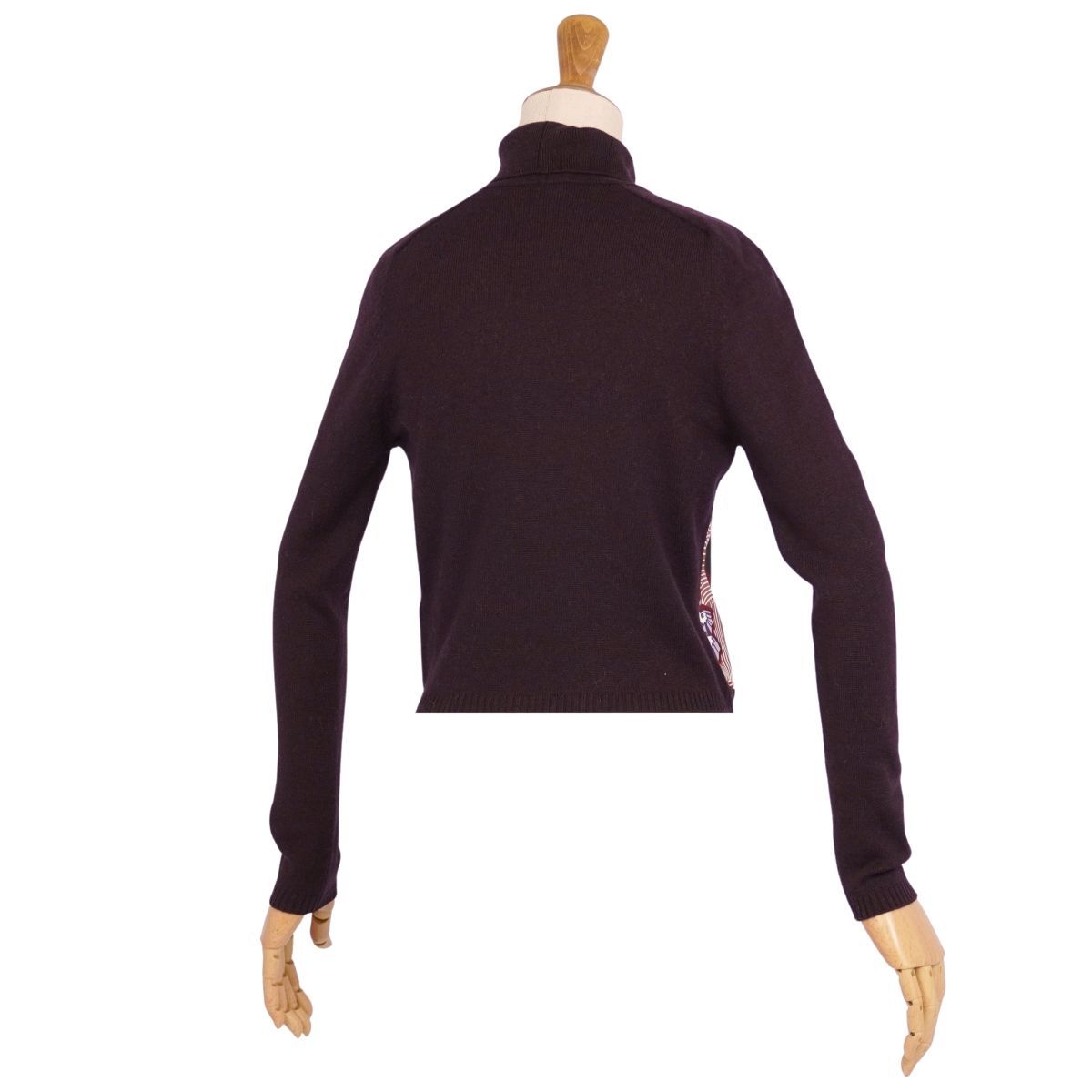 美品 エルメス HERMES ニット マルジェラ期 セーター シルク切り替え 総柄 トップス レディース XS ダークパープル