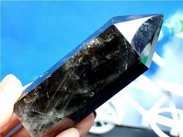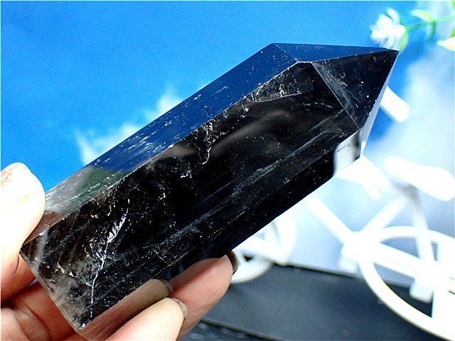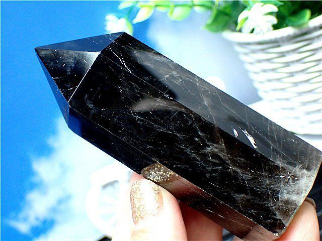 茶水晶と同じく自然の放射線の影響で暗色に変化した水晶。そのため水晶の透明度に関わらず、見た目で黒く見えるものは黒水晶、茶色のものは煙水晶と呼ばれるようです。黒水晶も水晶ですので強い光に当てると透けます。 古代より特に魔よけの石として用いられてきました。水晶は魔よけの効果が強いのですが、その中でも特にスモーキークォーツと黒水晶は破邪の力が強いとされています。悪霊を祓い、マイナスエネルギーを吸収し跳ね返し強力に持ち主を守護するとされています。 雑念や妄念、邪念を打ち払い集中力を高め、霊性や霊感を研ぎ澄まし高めてくれるとされています。現在は産出量が少なく希少価値の高い石といえます。