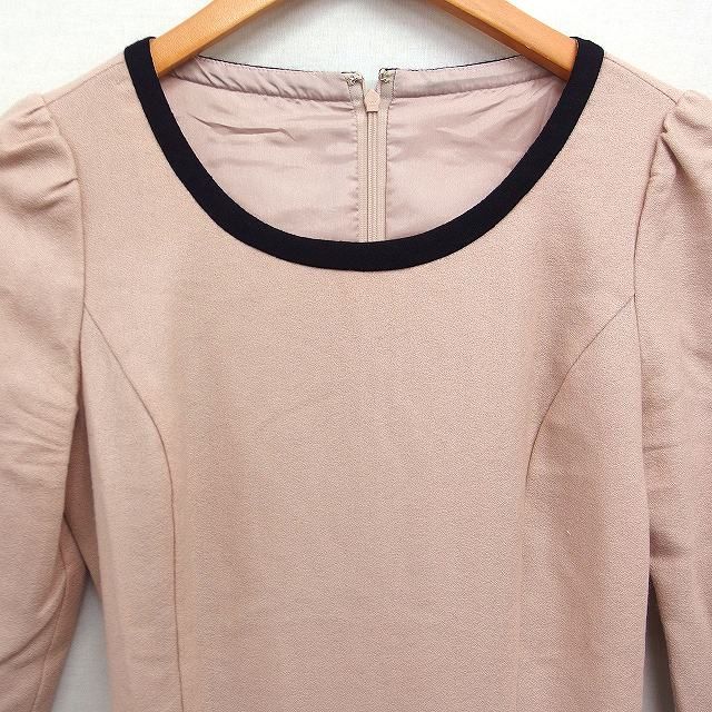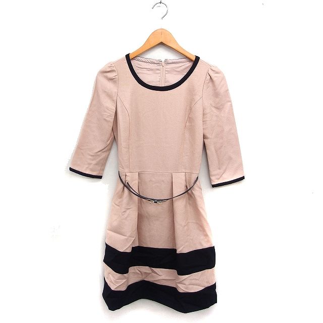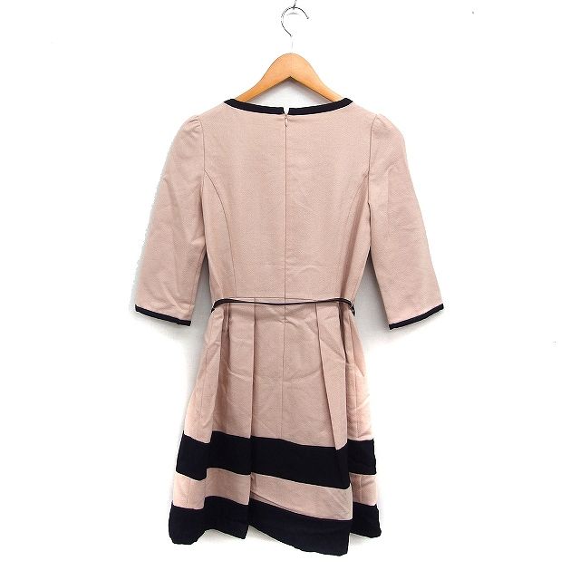 【商品名】デビュー ド フィオレ Debut de Fiore 切替 ウール フレア ワンピース ひざ丈 6分袖 丸首 タック 配色 36 ベージュ ブラック 黒 /FT4