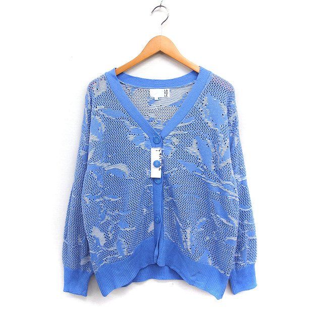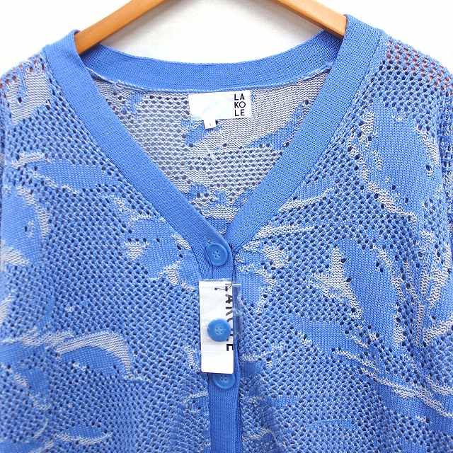 【商品名】ラコレ LAKOLE 花柄 メッシュ カーディガン Vネック F ブルー 青 /FT44