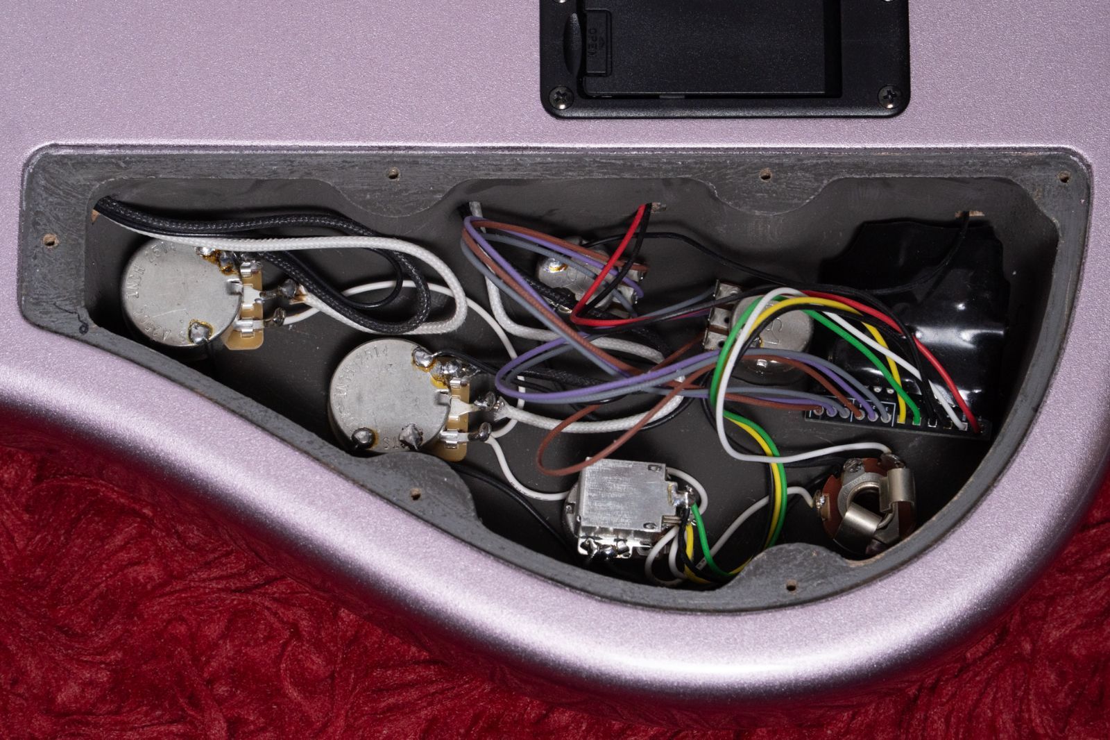 ピックガードはありませんが、ボディトップと弦のスペースは一般的なJBのピックガードと弦のスペースとほぼ同様に設定しました。