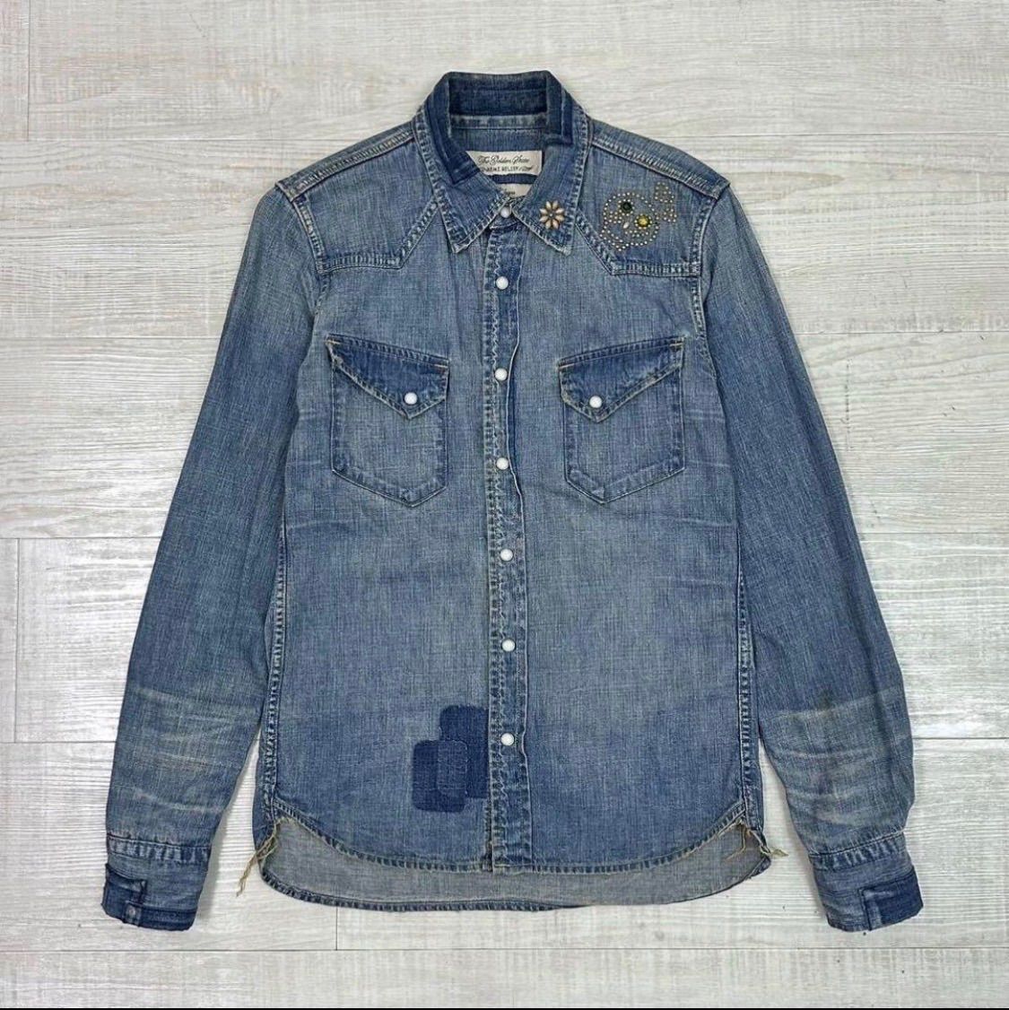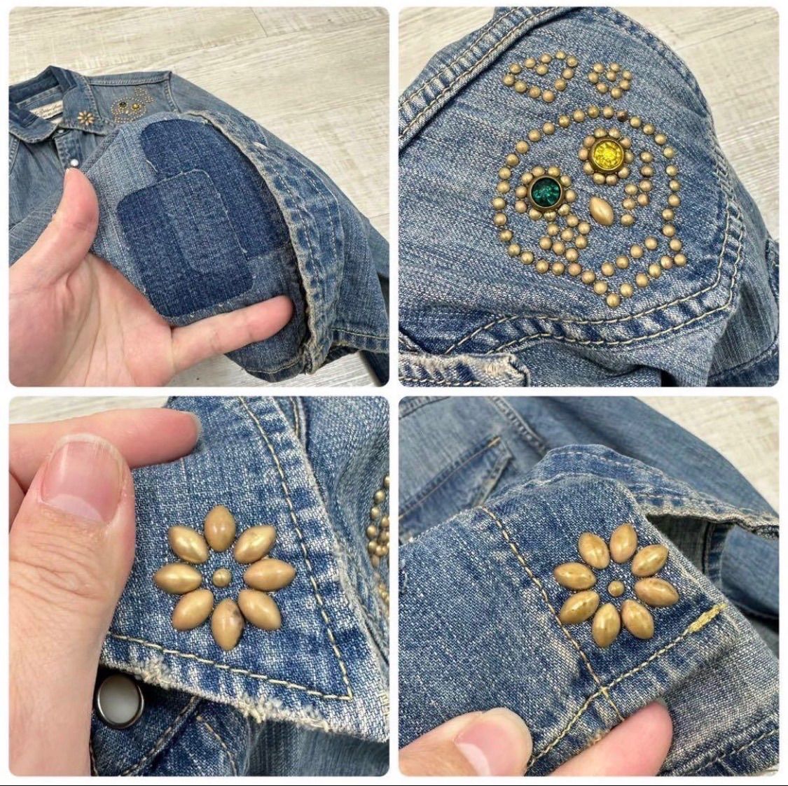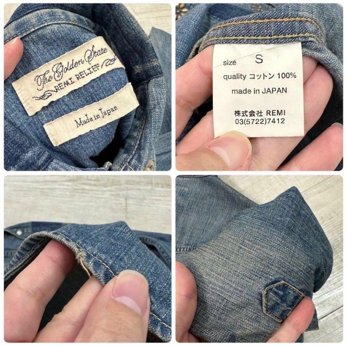 REMI RELIEF レミレリーフ グランジ USED 加工 スカル ハート スタッズ デニム ウエスタン シャツ SHIRT MADE IN JAPAN 日本製 サイズ S