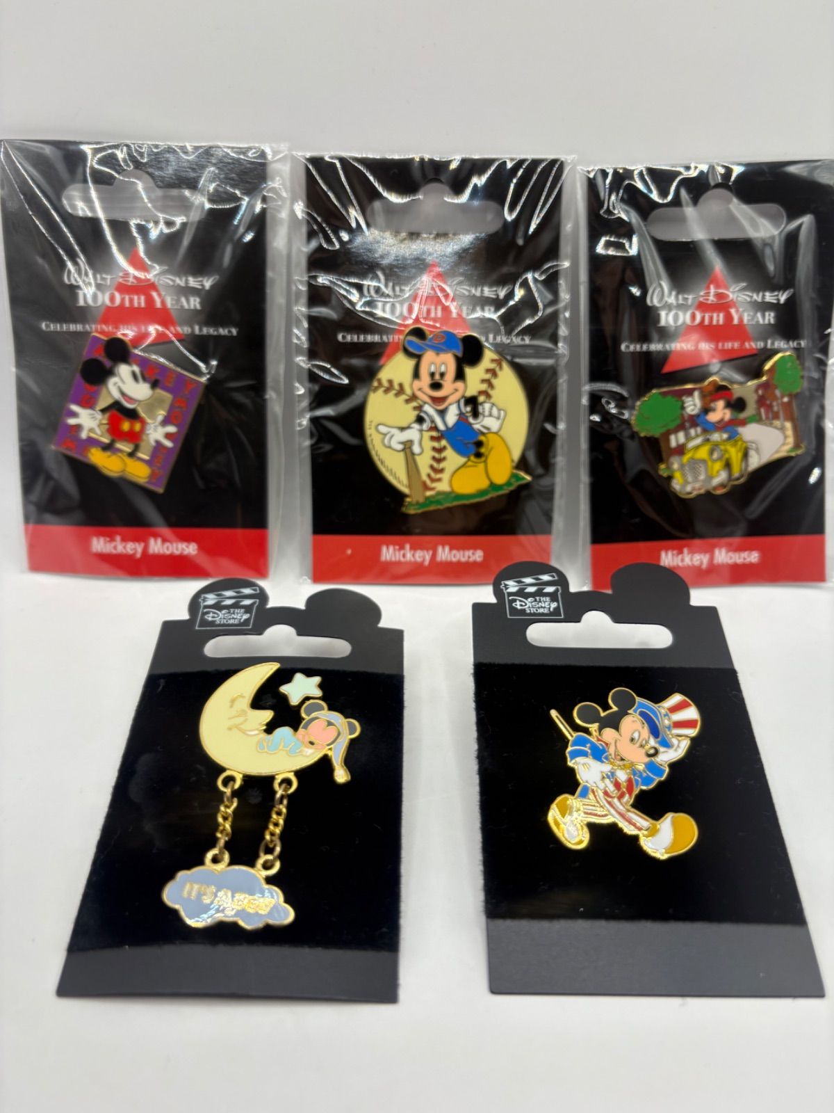 特に、希少性の高い**「WALT DISNEY 100TH YEAR CELEBRATING HIS LIFE AND LEGACY」**のミッキーピンが3種類含まれています。
