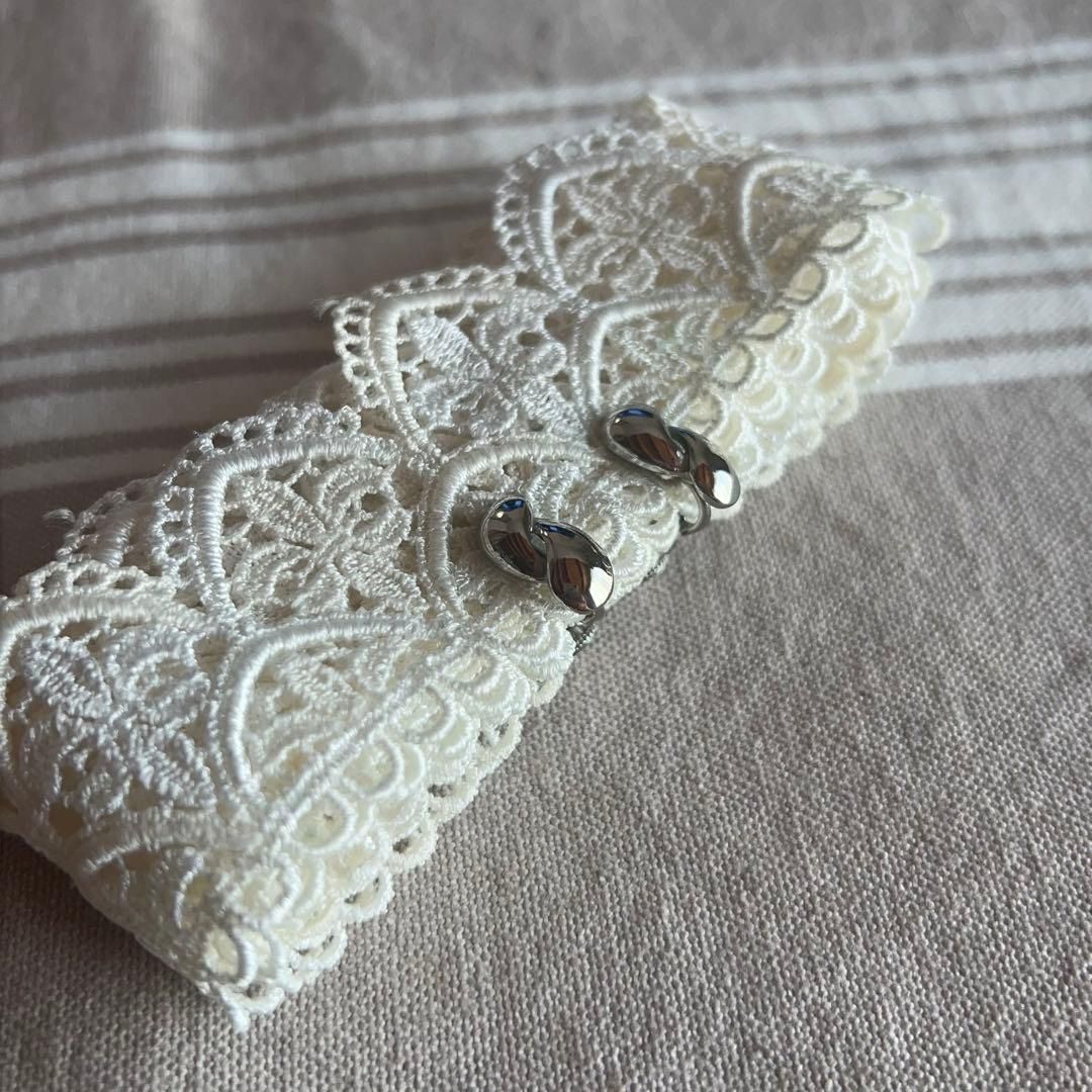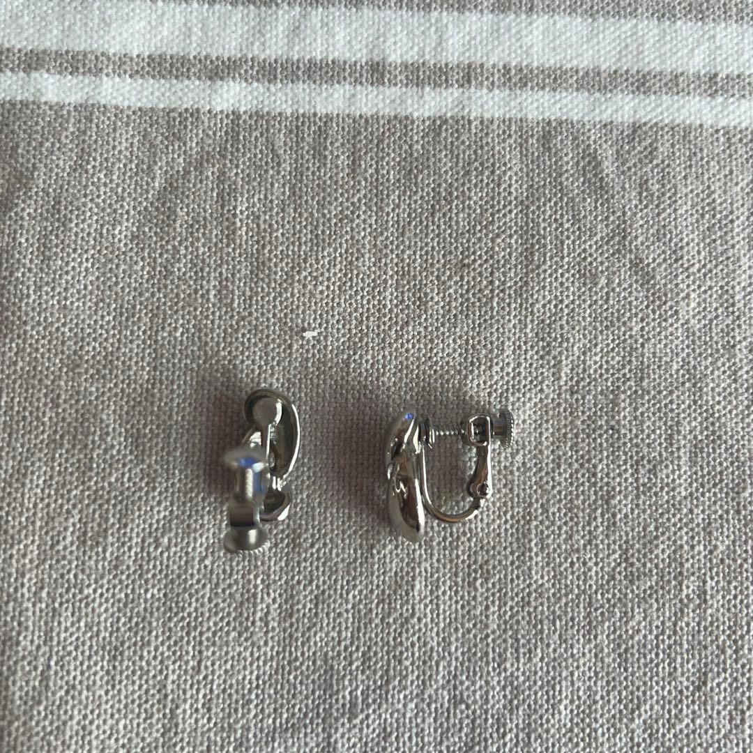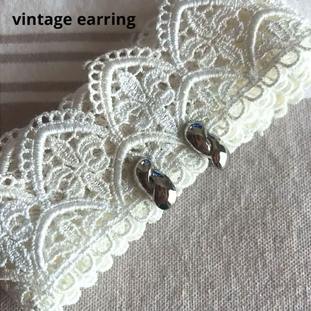 シルバーカラーのすっきりとしたデザインのビンテージイヤリングです。つるりとしたシンプルさでオンオフ問わず使えるアイテム