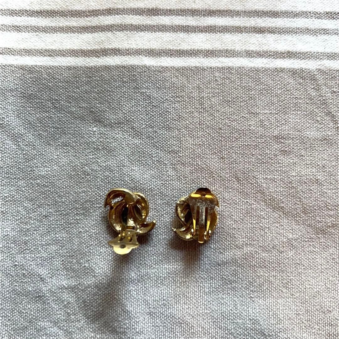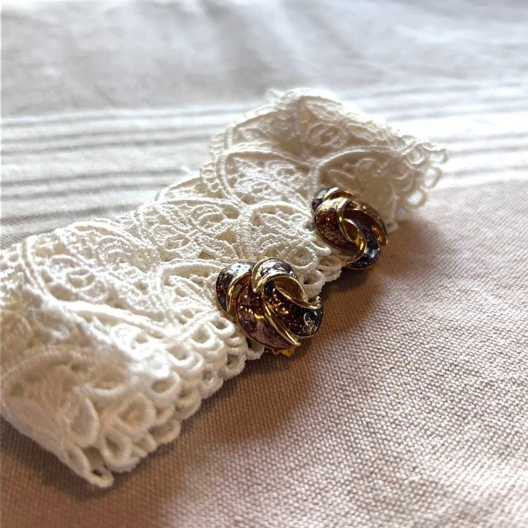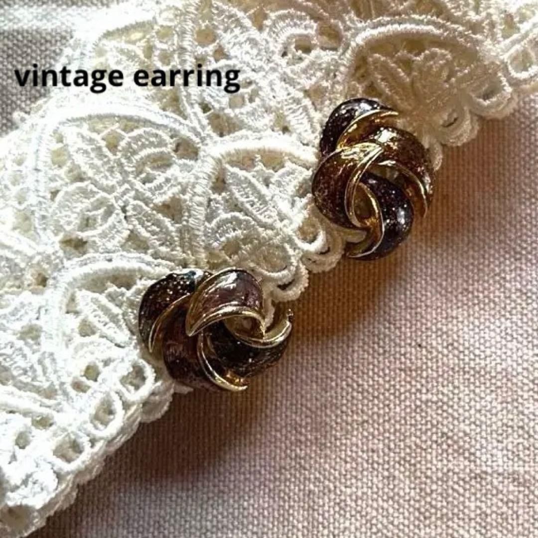 キラキラとしたブロンズカラーが動くたびに表情を変えるビンテージイヤリングです。波が組み合わされたようなデザインで小さめながら存在感のあるアイテム。オンオフともに活用可能です