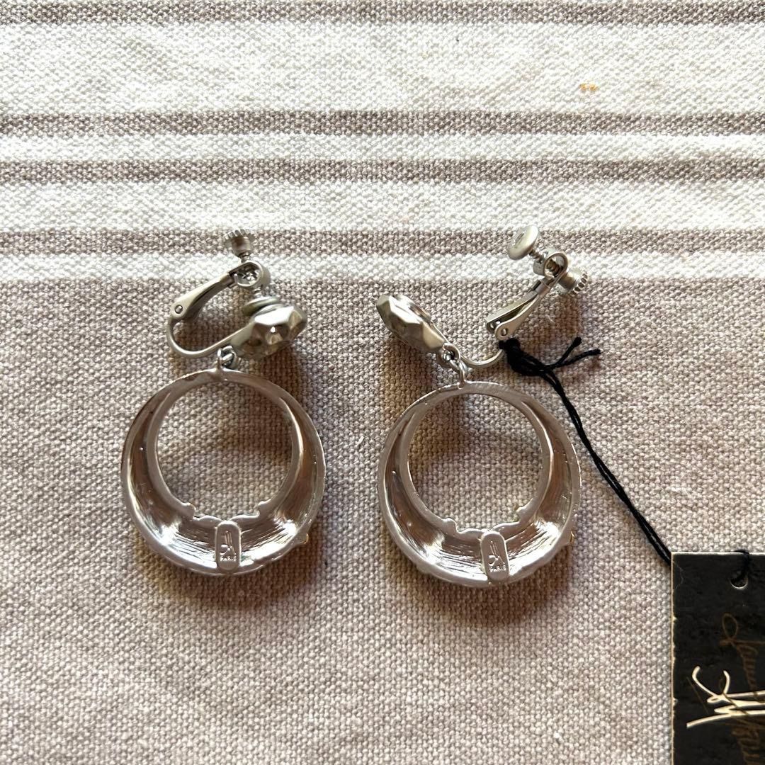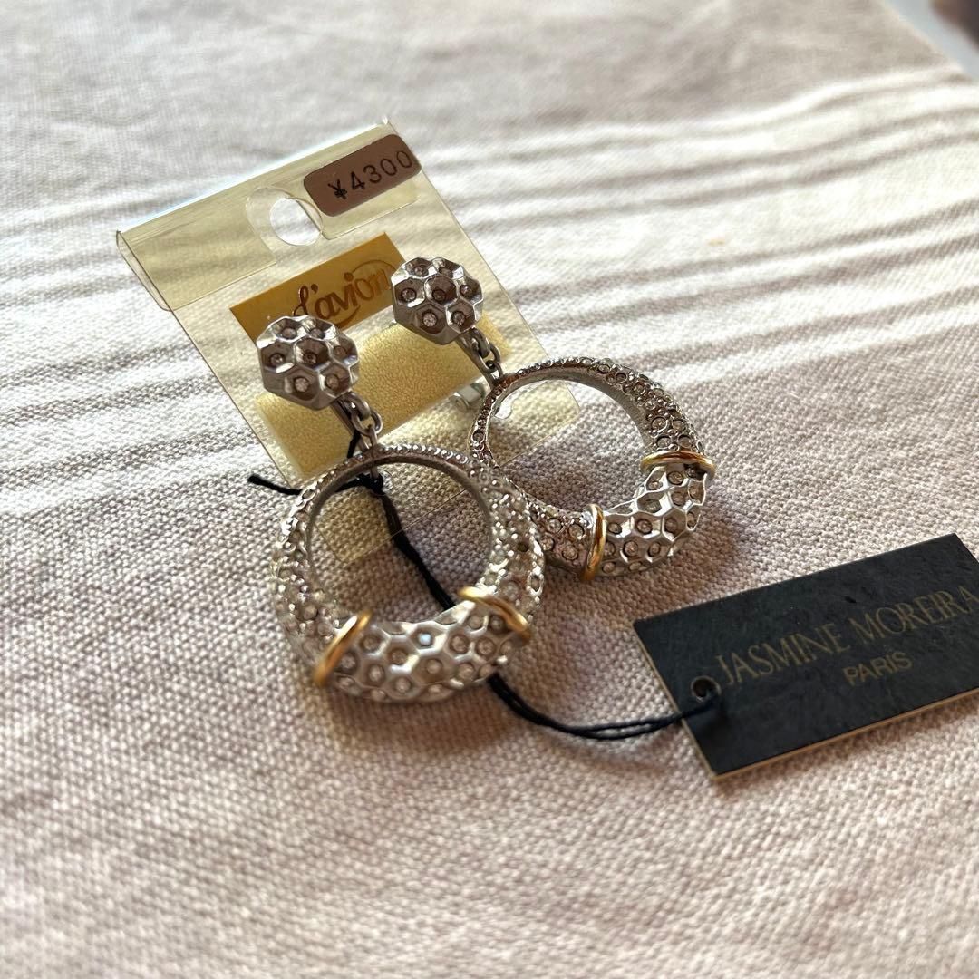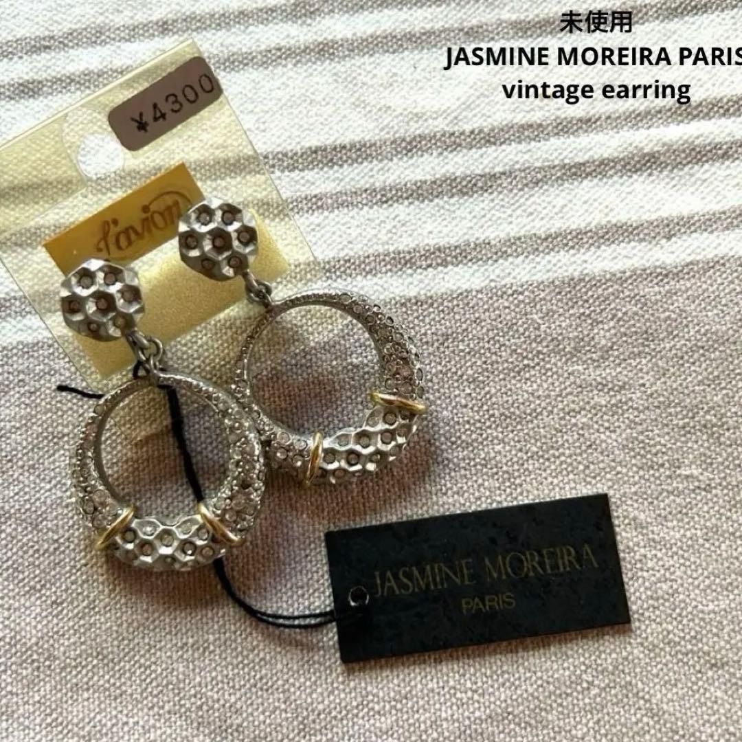 ジャスミンモレイラの艶消しシルバーにビジューがはいったビンテージイヤリングです。ゆらゆらと揺れ表情がありながら品のある輝きでオンオフともに使えるアイテム。日本製