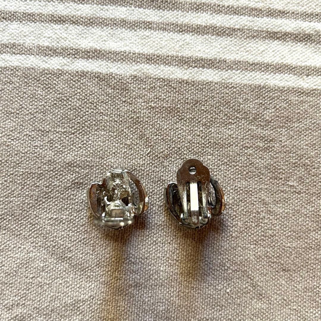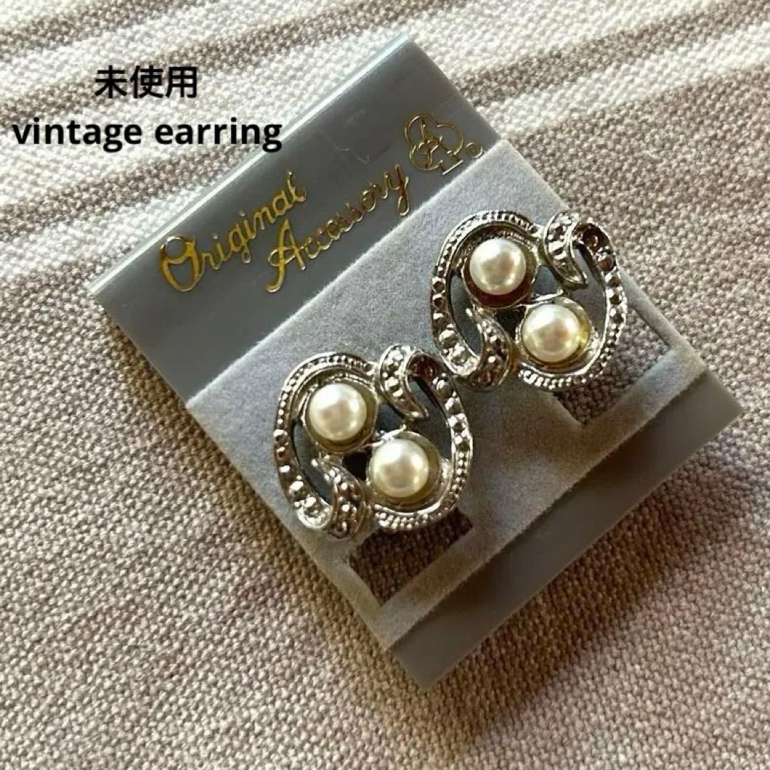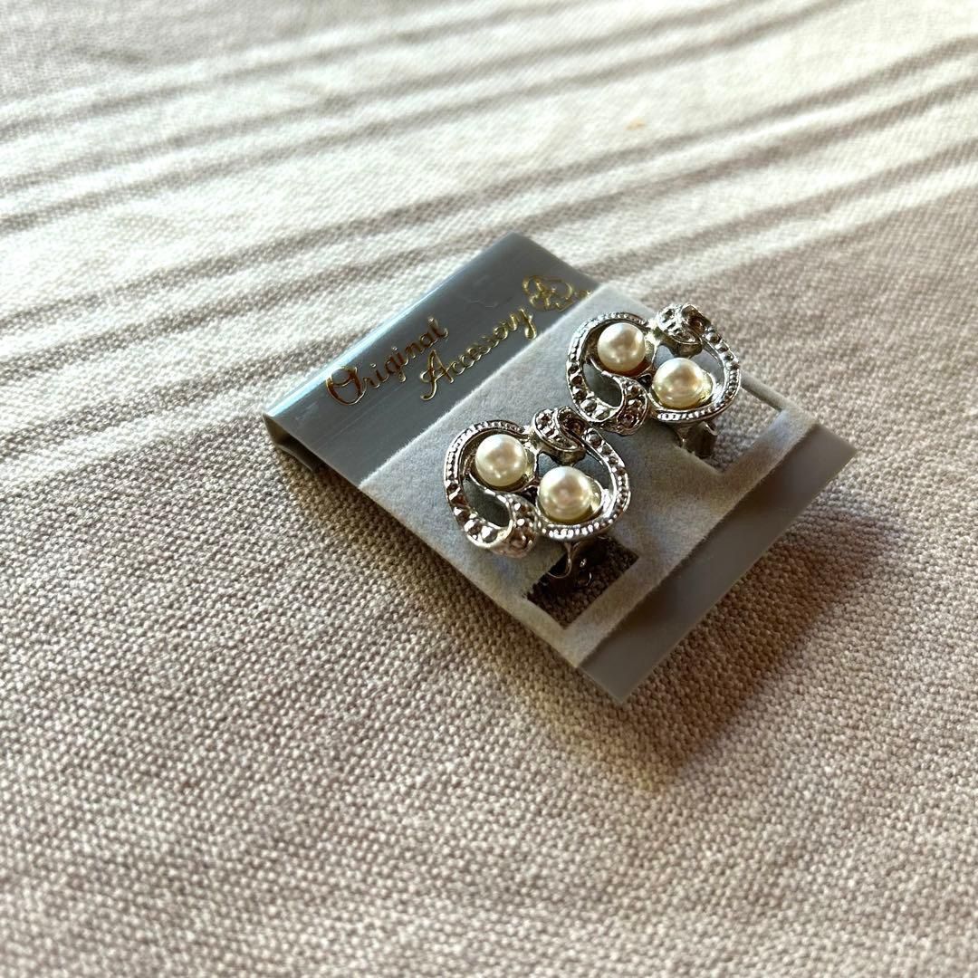 2つのパールを囲むようにシルバーのラインが美しいビンテージイヤリングです。品のある華やかさでオンオフともに使えるアイテム