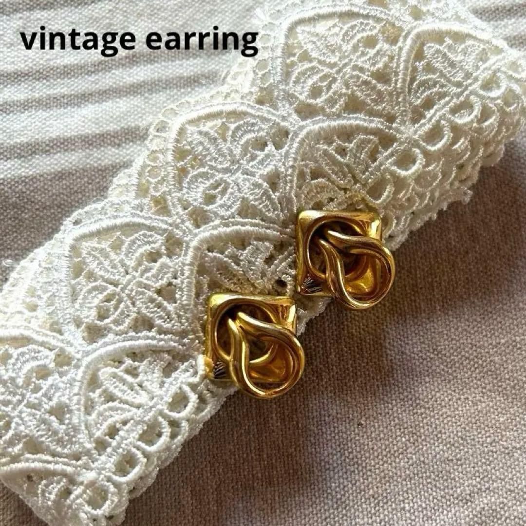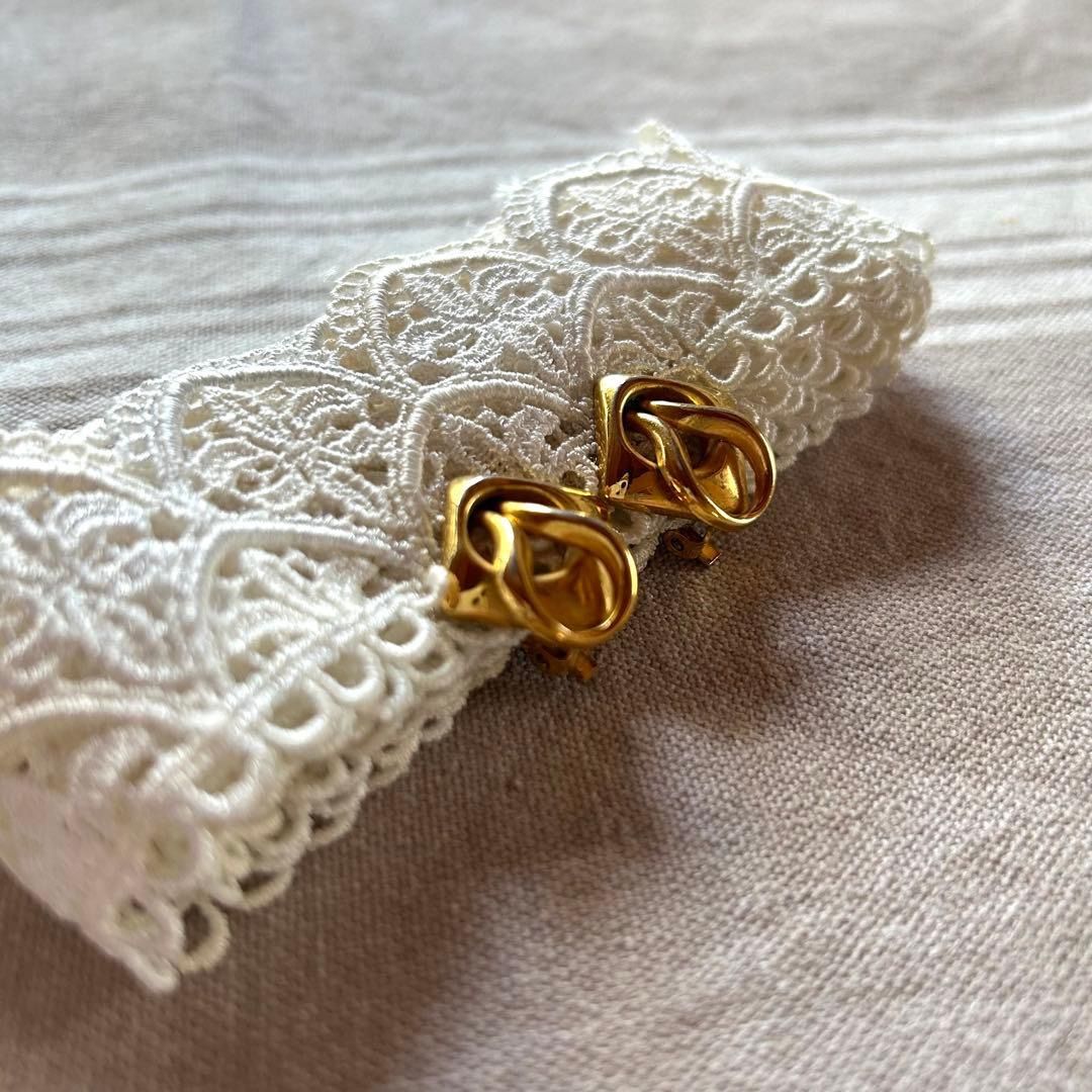 ゴールドのノットデザインがステキなビンテージイヤリングです。シンプルで合わせやすいデザインでオンオフともに使えるアイテム