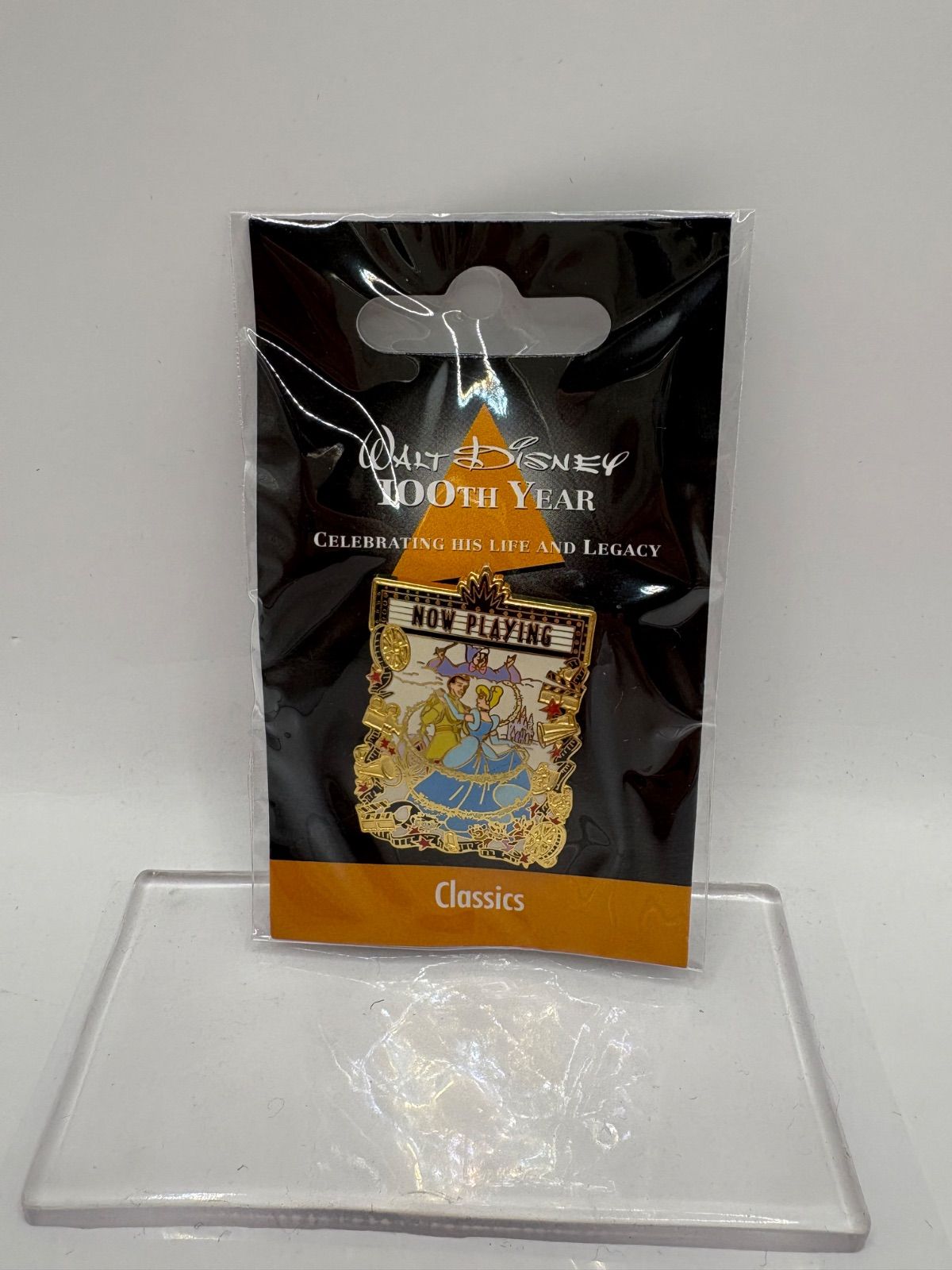 ディズニー創立100周年を記念した「Walt Disney 100TH YEAR Classics」シリーズのシンデレラとプリンス・チャーミングのピンバッジです。