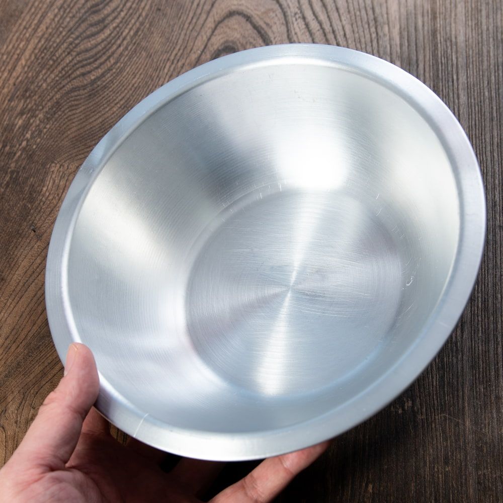 タイからやってきた、アルミボウルです。調理用のミキシングボウルとしての用途以外にも、ご飯やオカズ、サラダボウルなど食器としてご使用いただけます。
