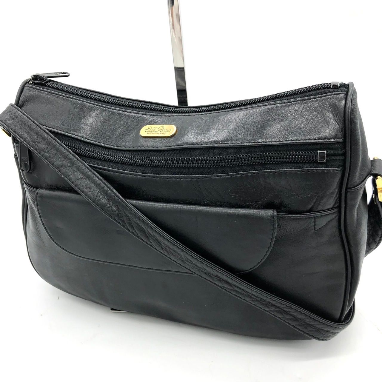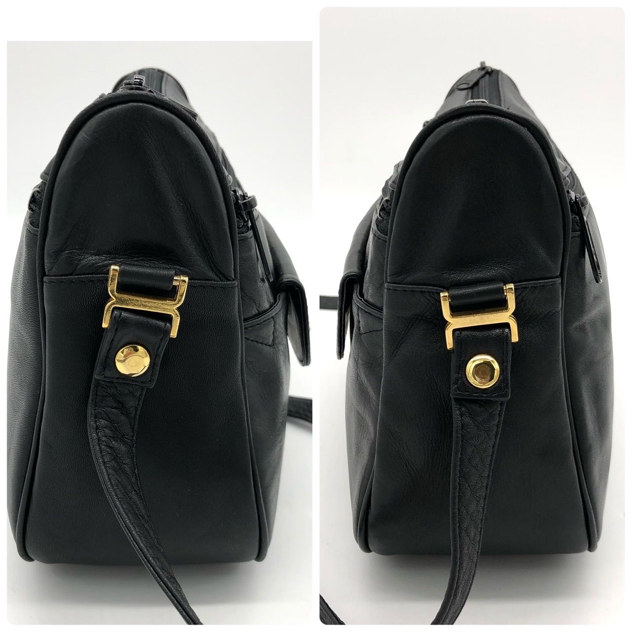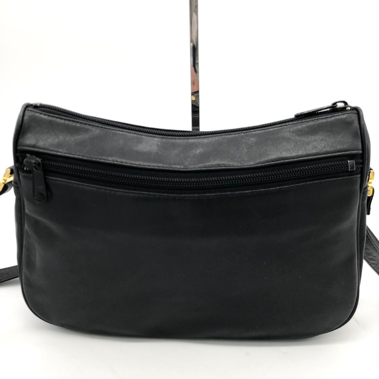 • シンプルなデザイン:ブラックレザーにゴールド金具がアクセントになった、合わせやすいデザインのショルダーバッグです。