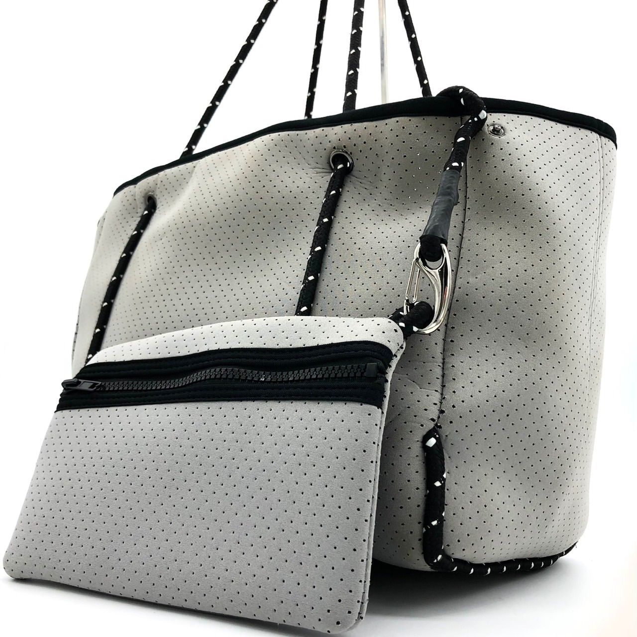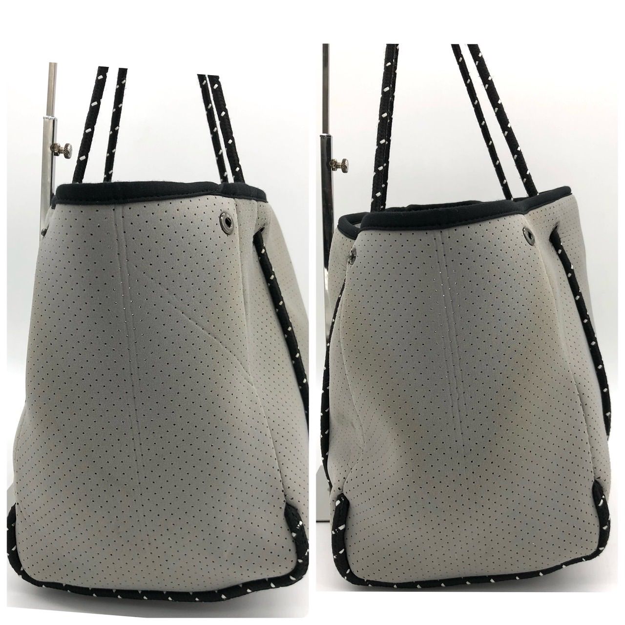 • 大容量設計: 軽くて丈夫なネオプレン素材で、荷物が多くなりがちな普段使いから、ジムやマザーズバッグとしても活躍する大容量トートバッグです。
