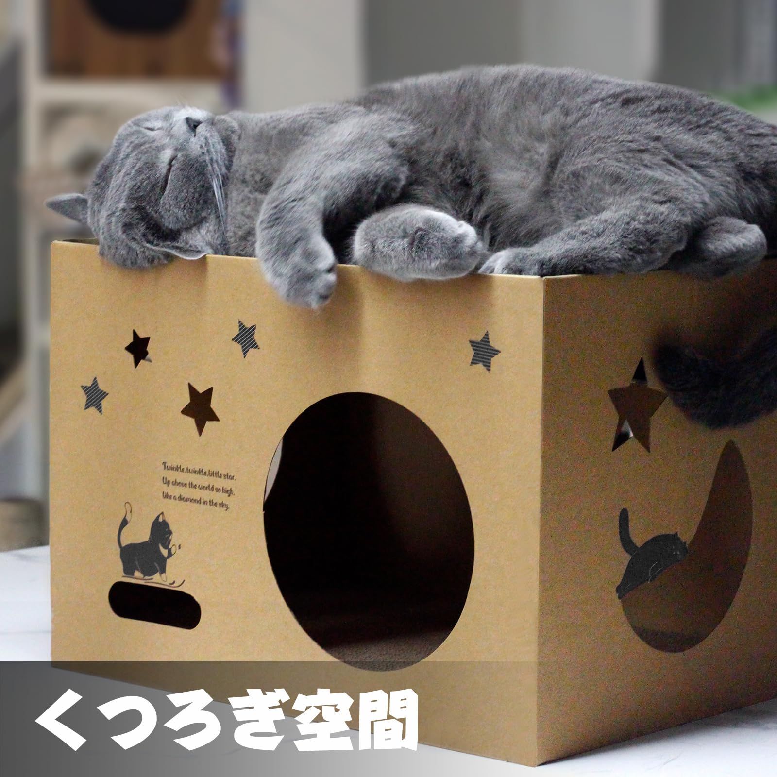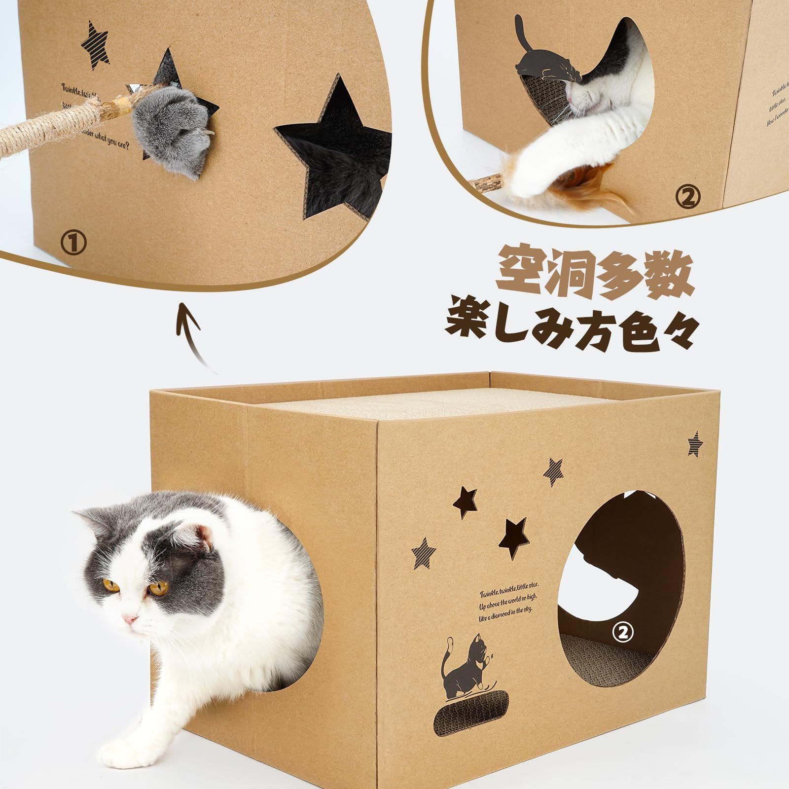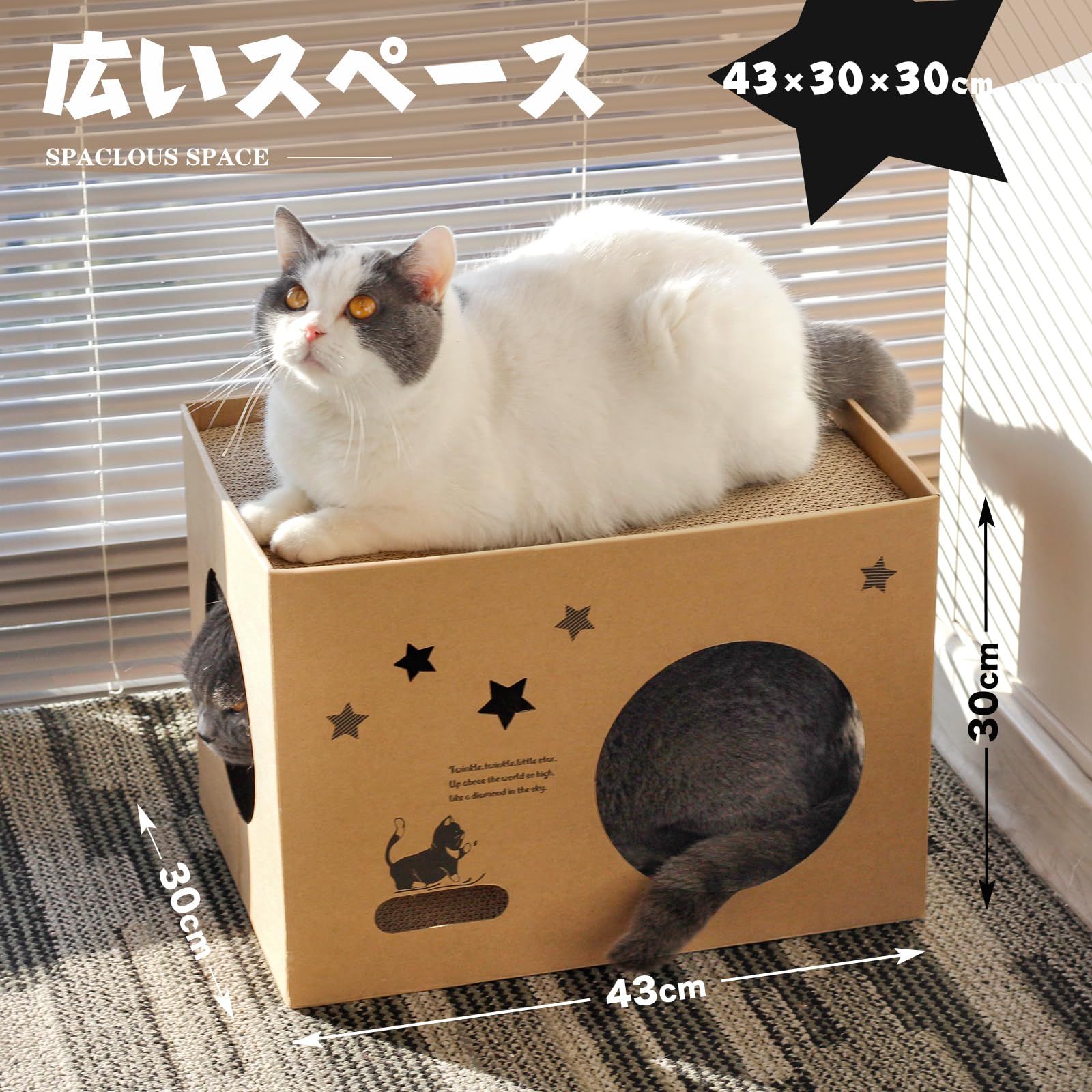 猫ちゃんが喜んで入るダンボール製ボックスです.爪とぎができる段ボールキャットハウスでもあります。大切な猫ちゃんの運動不足&ストレス軽減できます