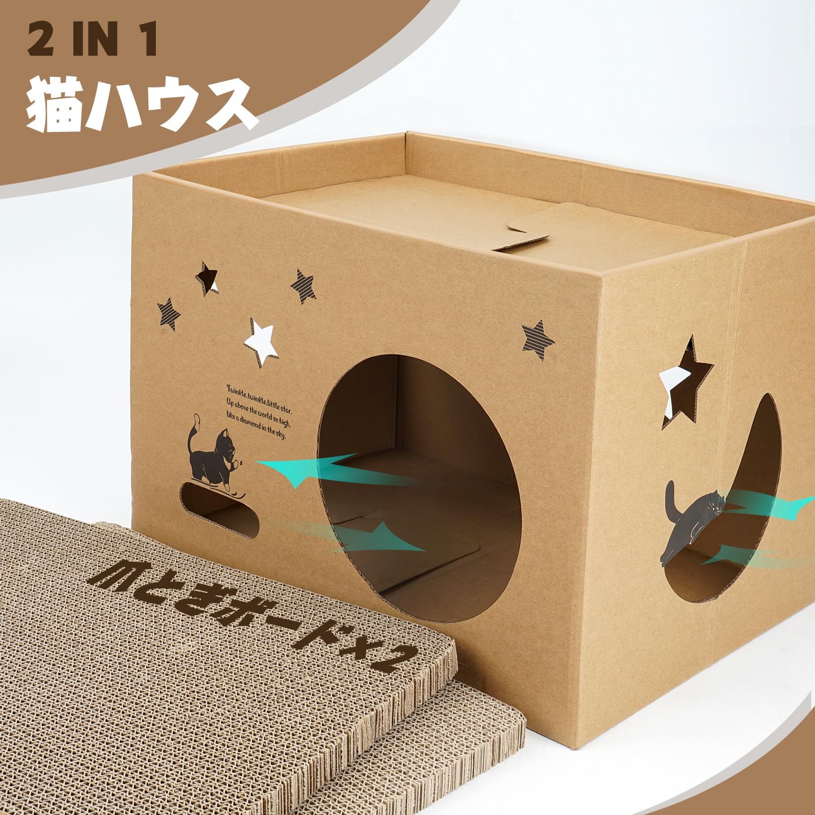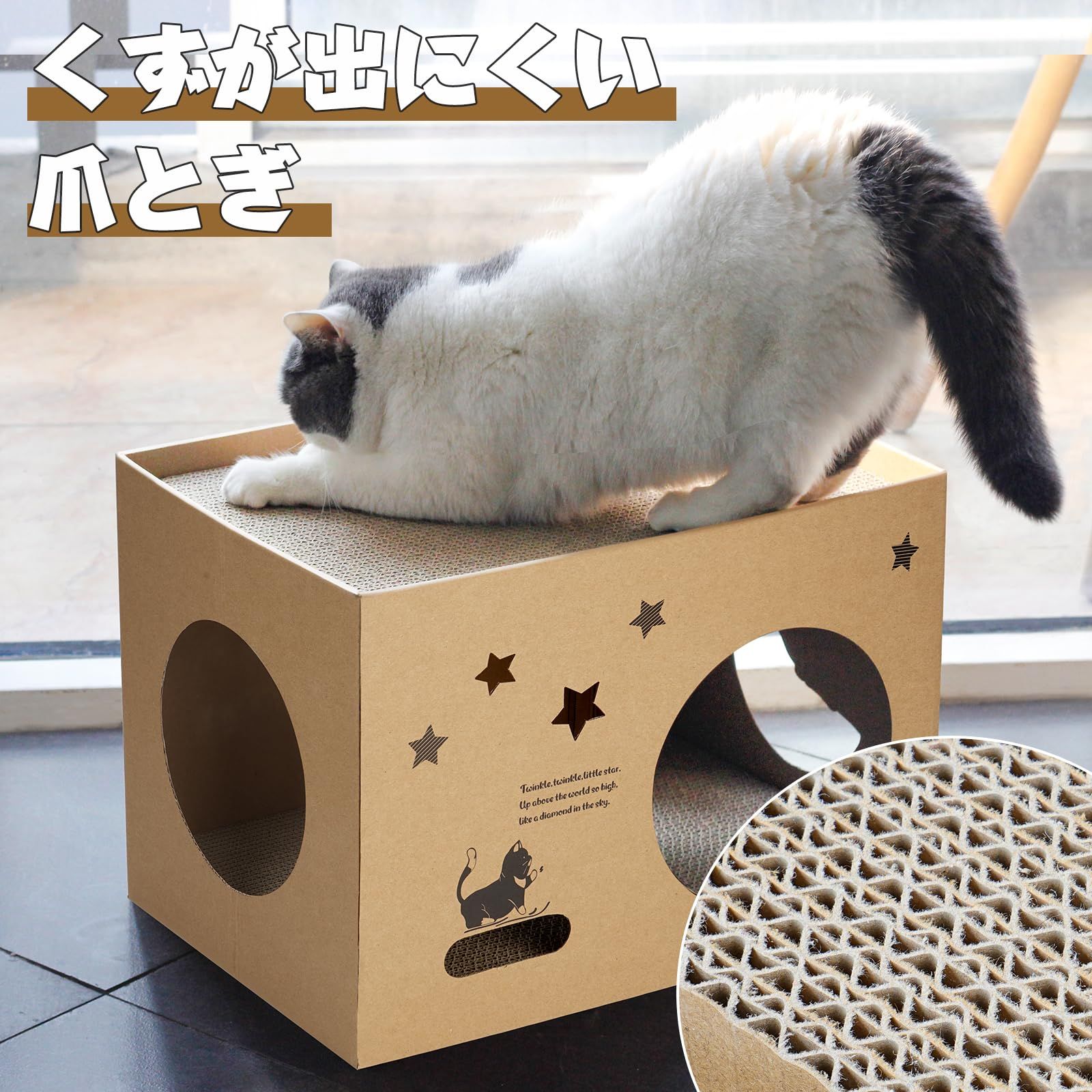 ULIGOTA猫 爪とぎ 段ボール キャットハウス 猫用 つめとぎ ダンボールハウス 猫ベッド 通気 丈夫 ストレス解消 組立簡単