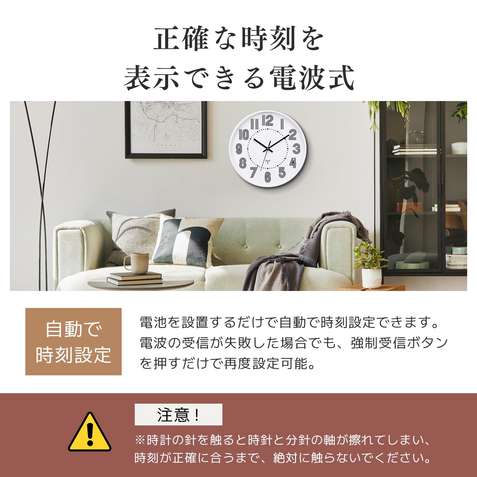 電池を設置するだけで自動で時刻設定設定できます