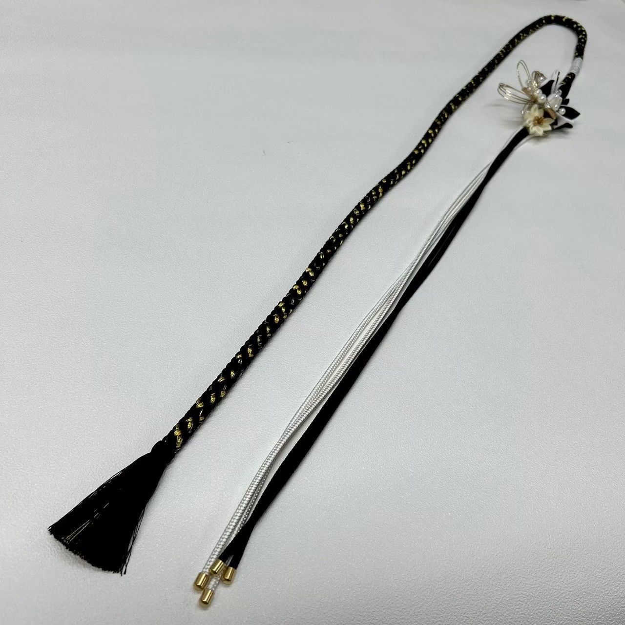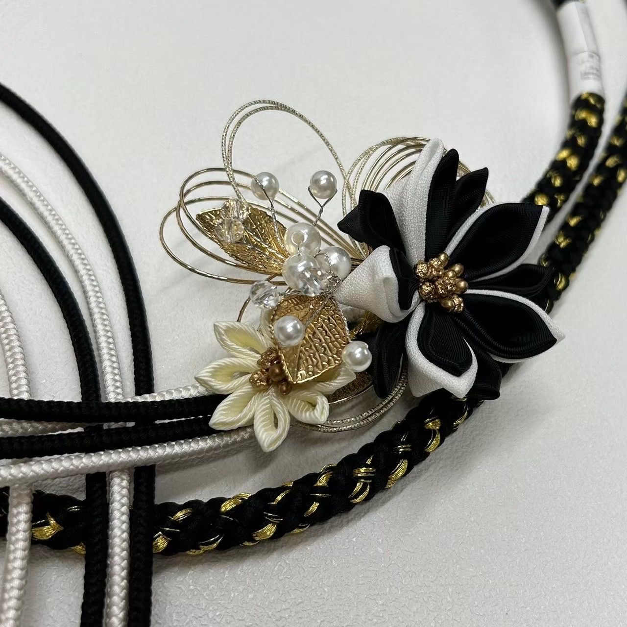 振袖用高級帯締めのトレンド水引・つまみ細工・パール付き