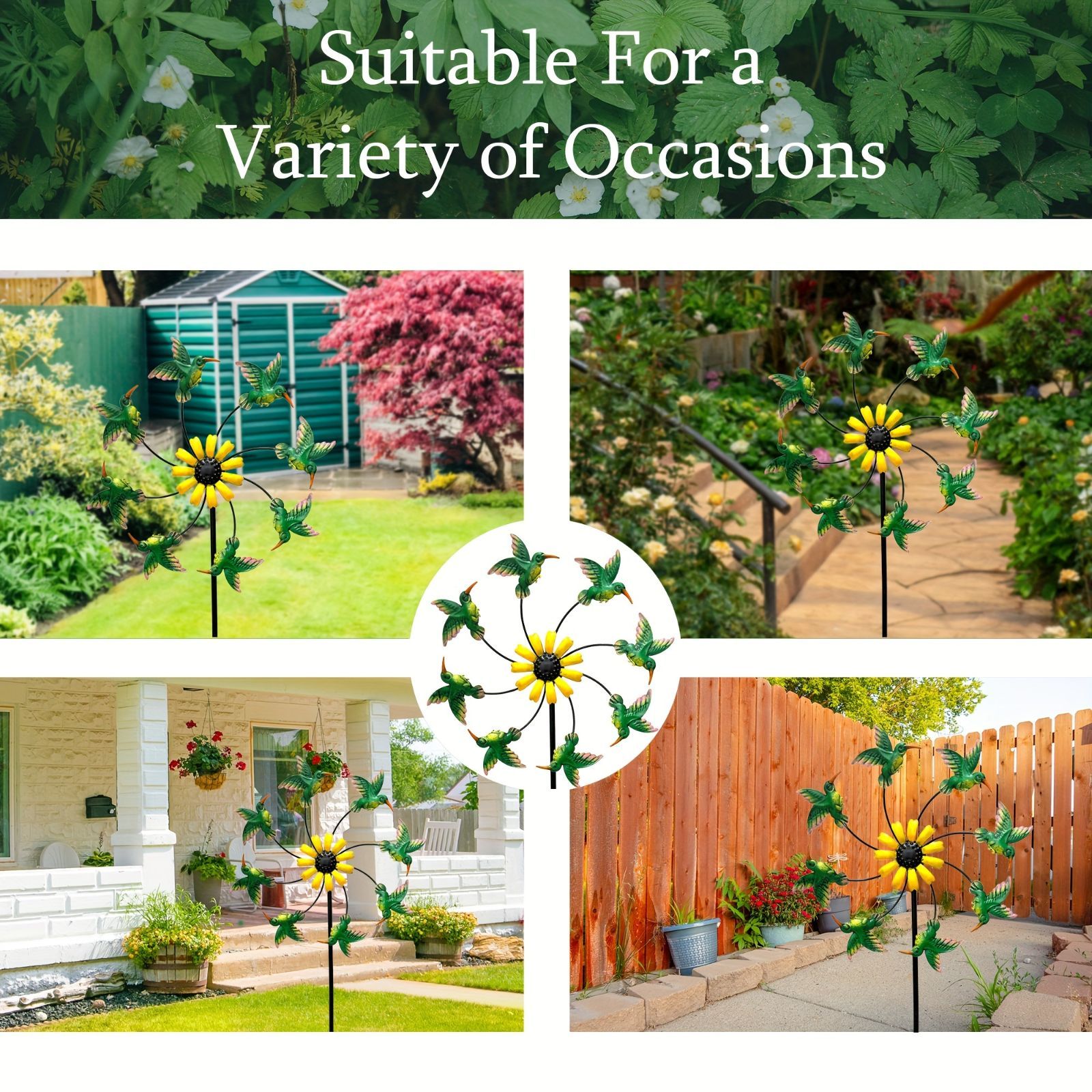 ハチドリと向日葵のデザインは、あなたの庭を華やかに彩る理想的な装飾アイテムです!耐久性に優れた鉄製で、屋外はもちろん、プランターやインテリアとしてもお楽しみいただけます。ハチドリと向日葵が描かれたデザインは、あなたのガーデニングスペースに可愛らしさをプラスし、訪れる人々の目を引くことでしょう。夜間のライトアップや日中の太陽の下でも、その美しさは際立ち、特別なひとときを演出します。