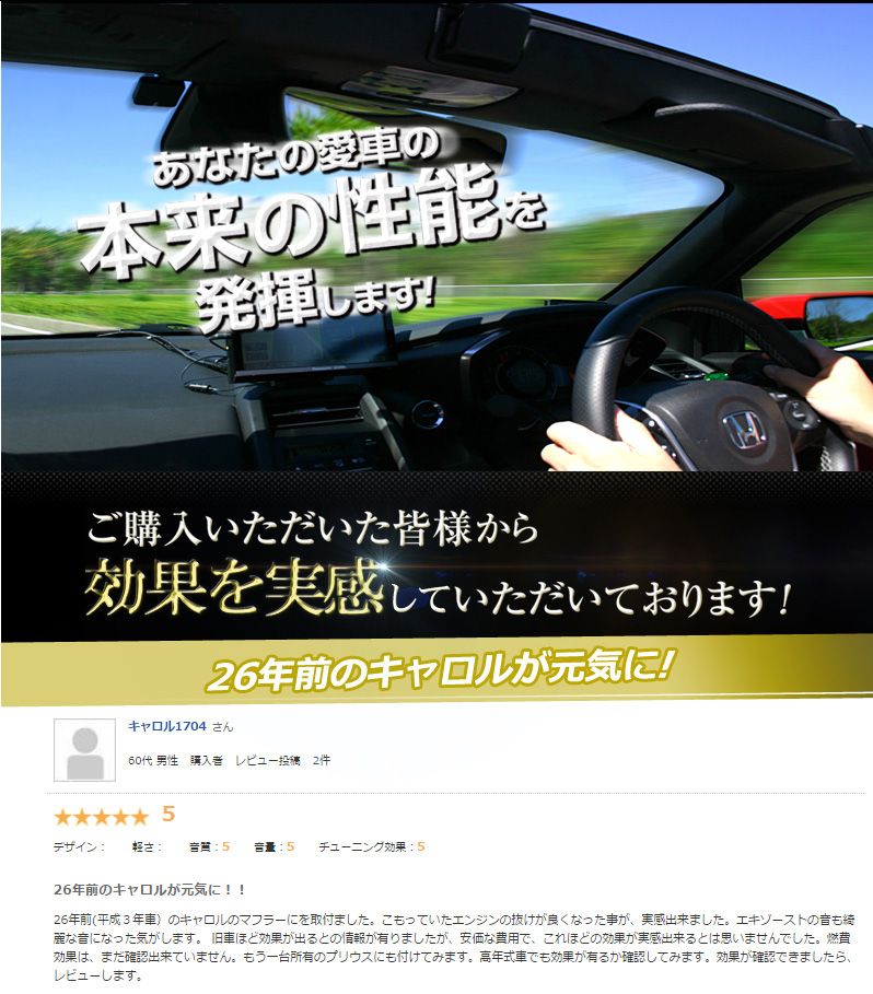 空気が移動するときに発生する摩擦は高回転になるほど大きくなります。マフラーの内壁には高回転になるほどプラスの電荷が増加し空気が通過しにくい現象が起こります。この製品を装着することによりプラスの電荷を効果的にアース処理し摩擦が低減し排気効率が大幅にアップします。排気効率がアップすることによりレスポンスが向上します。また、排気ロスの減少によりパワーとトルクがアップします。触媒付近に取り付けることによりスラッジが溜まりにくくなります。