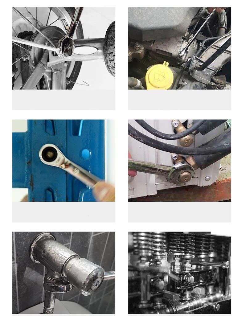 【特徴】一端はやり形スパナ、一端はラチェットレンチ。メガネ部は72山ギヤと12角サーフェイス採用で、振り幅の制限された狭い場所でも作業できますし、ボルトなども傷めません