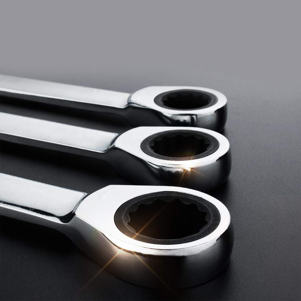 ラチェットレンチ コンビネーションレンチ スパナ整備工具 18mm 作業 常備 車 バイク 各種メンテナンス対応 家具組み立て 鏡面仕上げ (18mm)