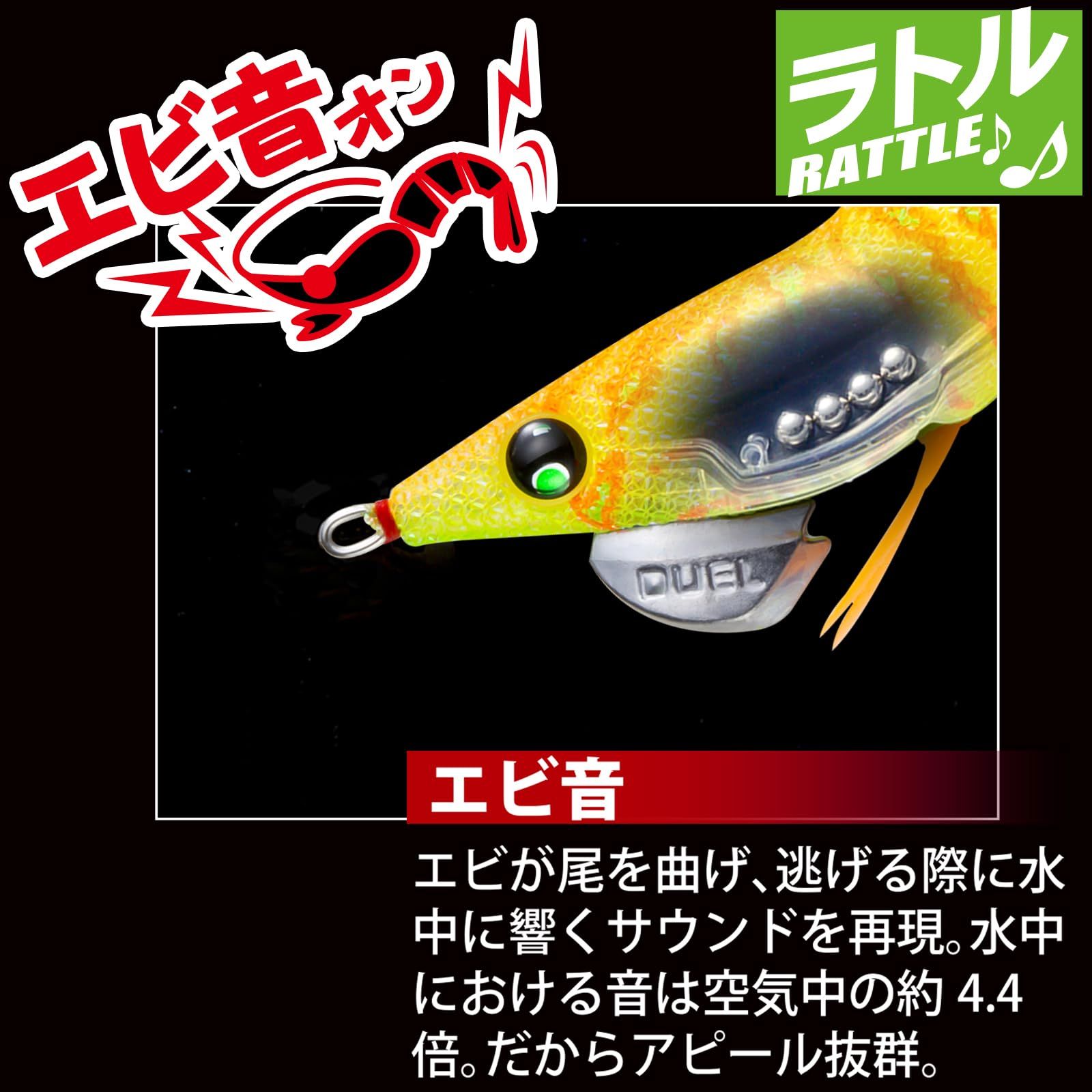 EZ-Qシリーズ史上、最強アピールの色と柄!! ●軽快ダートはそのままに「波動」「色」「音」で高活性のイカに、トリプルアピール!●色:全20色の色がスゴイ!!●音:アピール抜群のエビ音搭載!!●波動:パタパタフットライトの釣れる波動でアピール!!