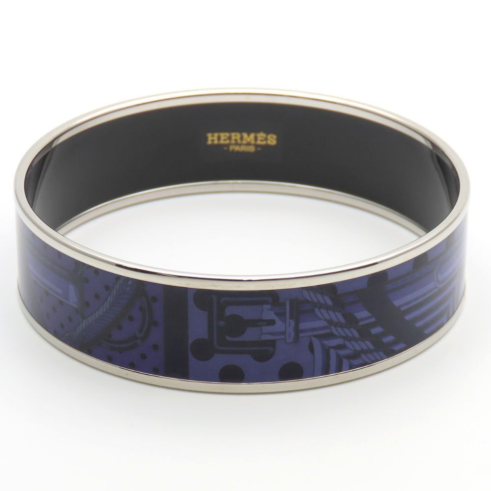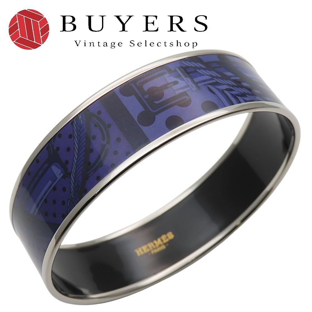 品名:【中古】 エルメス バングル エマイユGM メタル エナメル パープル系 シルバー 七宝焼き ベルト ドット レディース 女性 HERMES