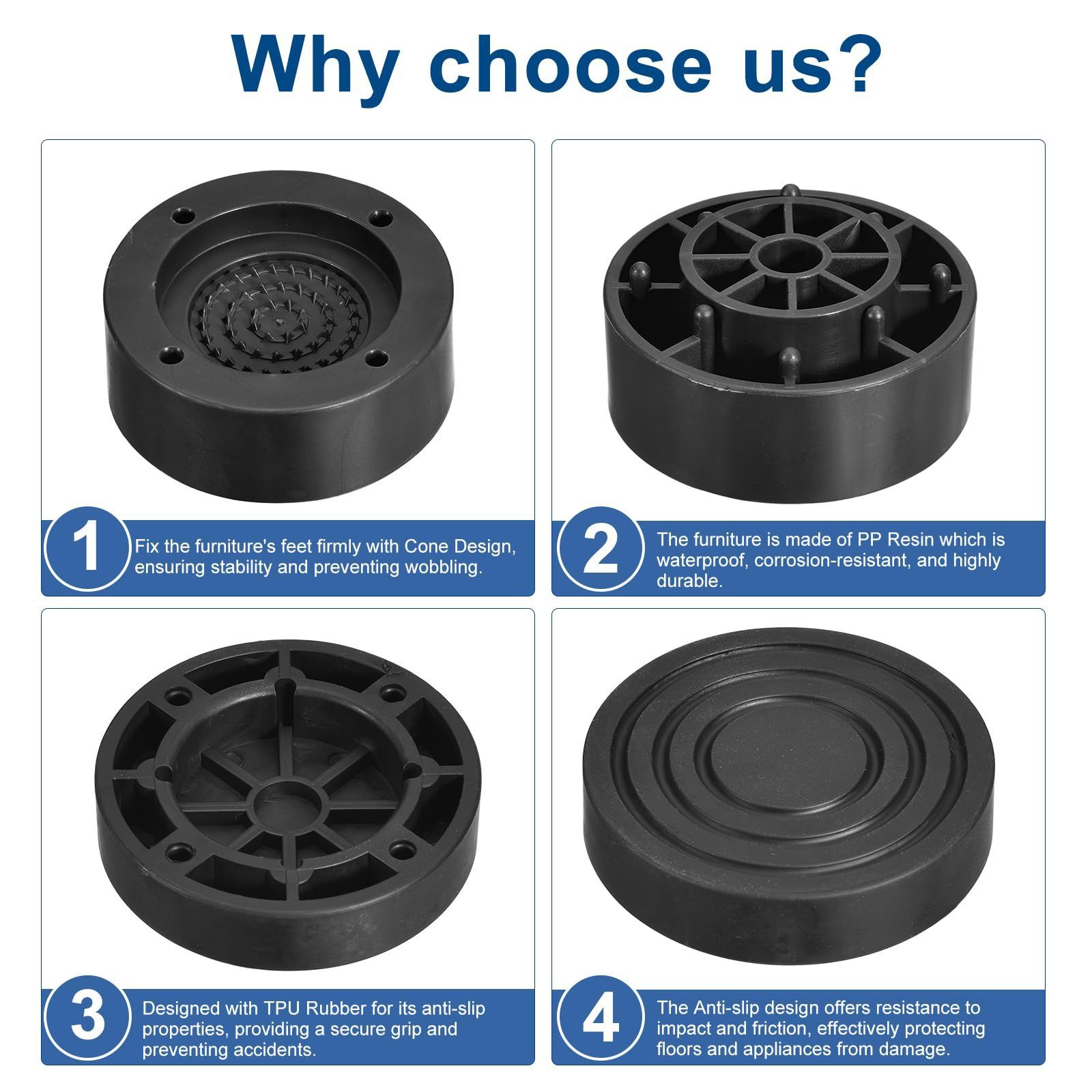 uxcell 丸い家具用ライザー4セット 高さ2.36の調節可能なベッドリフトライザー ベッドフレーム テーブル デスク ソファーレッグ チェアリフター 最大1300ポンドをサポート 黒