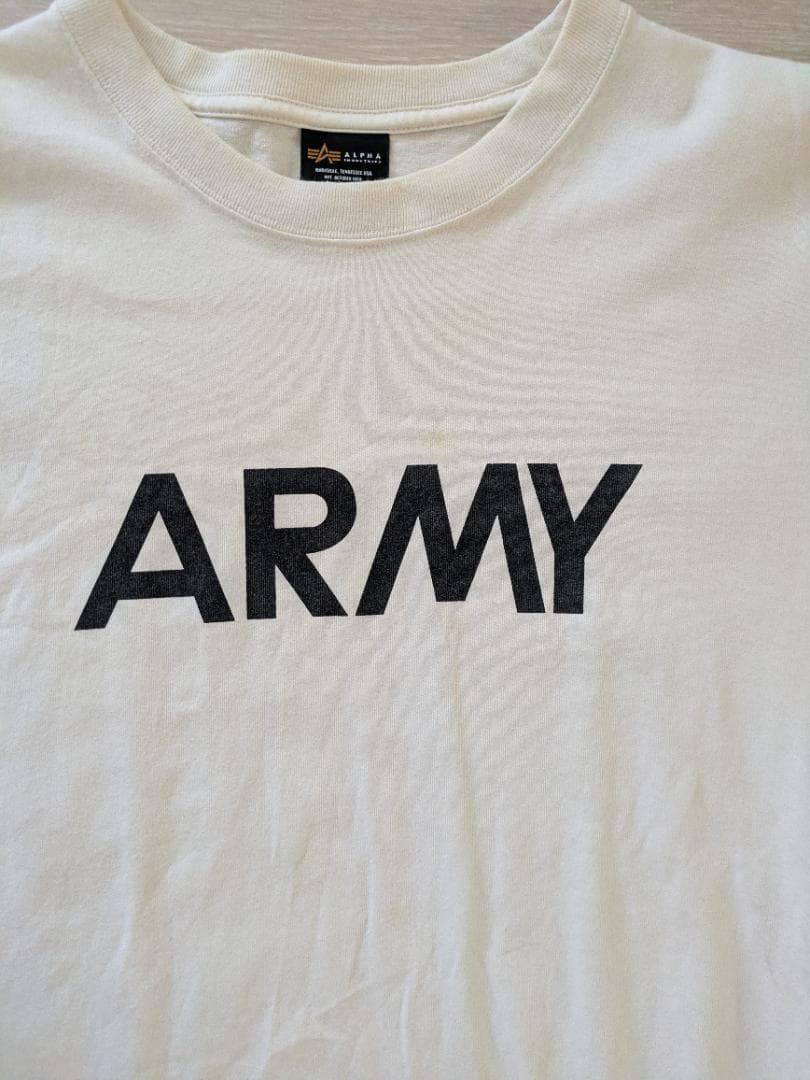 ALPHA INDUSTRIES(アルファ インダストリーズ)の「ARMY」ロゴTシャツです。