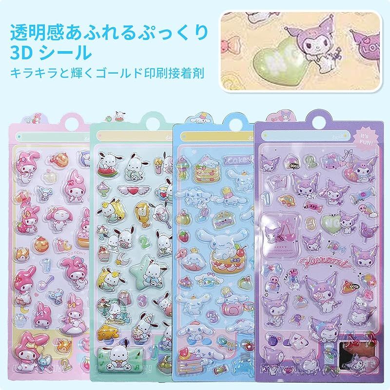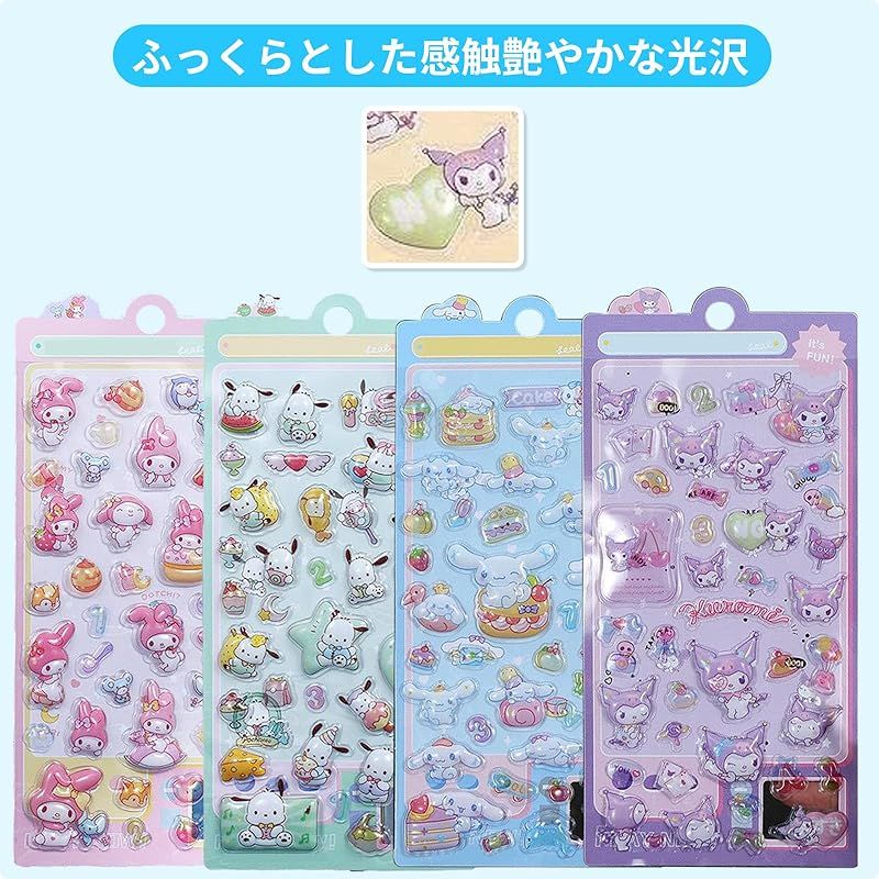【セット内容】本セットには、可愛らしいデザインが施された立体シールが計 4 枚同梱されています。
