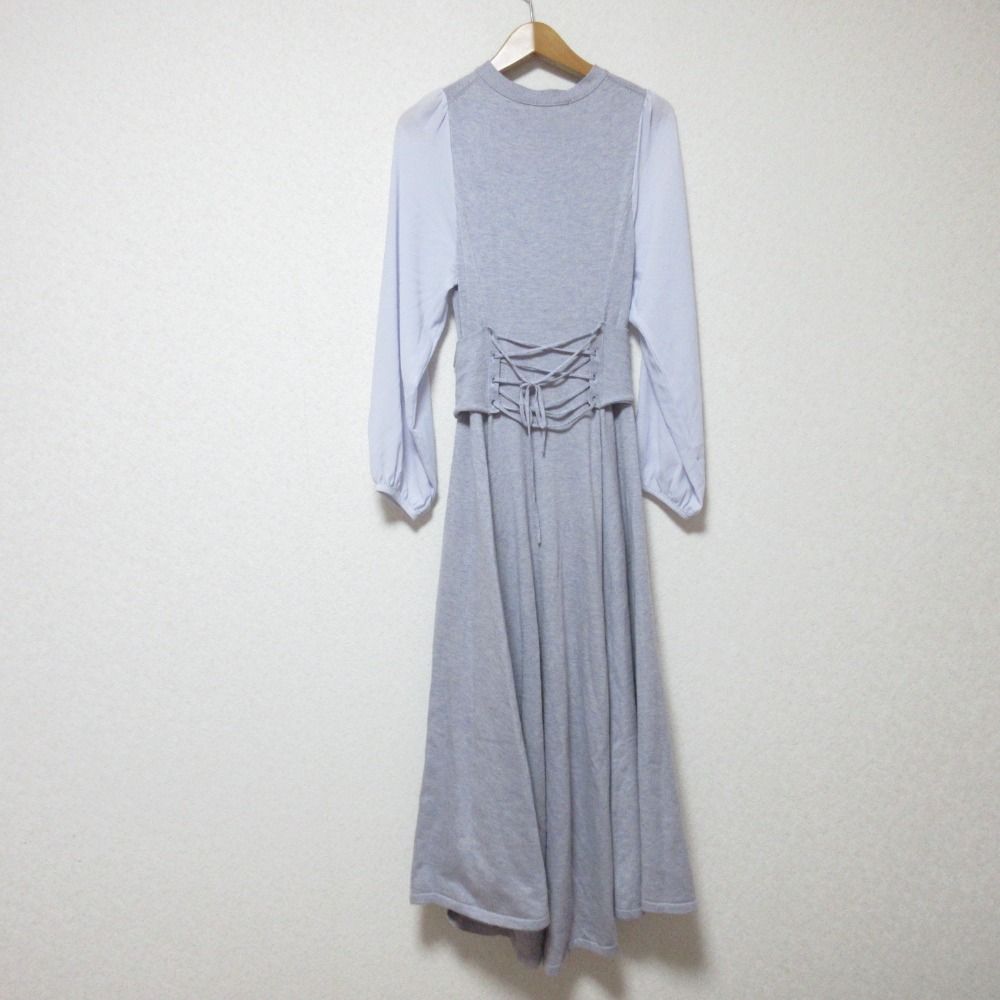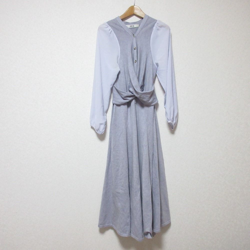 【商品名】FURFUR ファーファー ラップウエストニットドレス シフォンスリーブ 長袖 ロングワンピース F ラベンダー