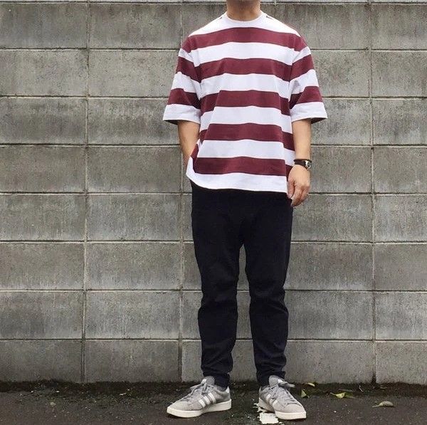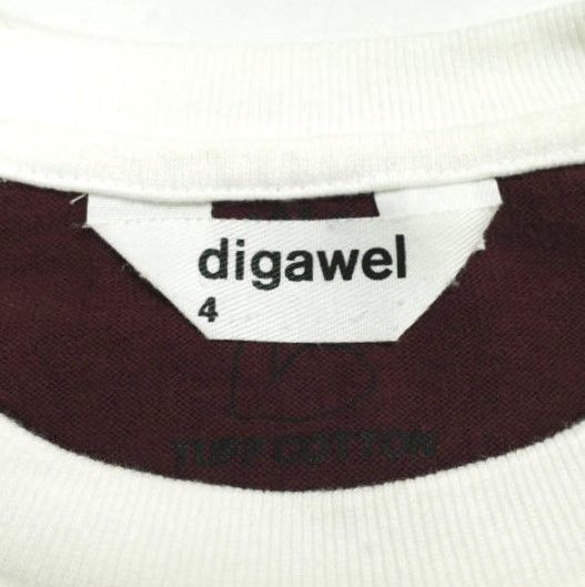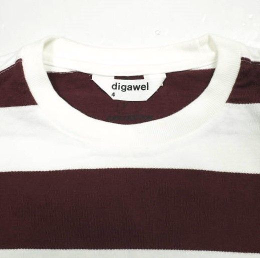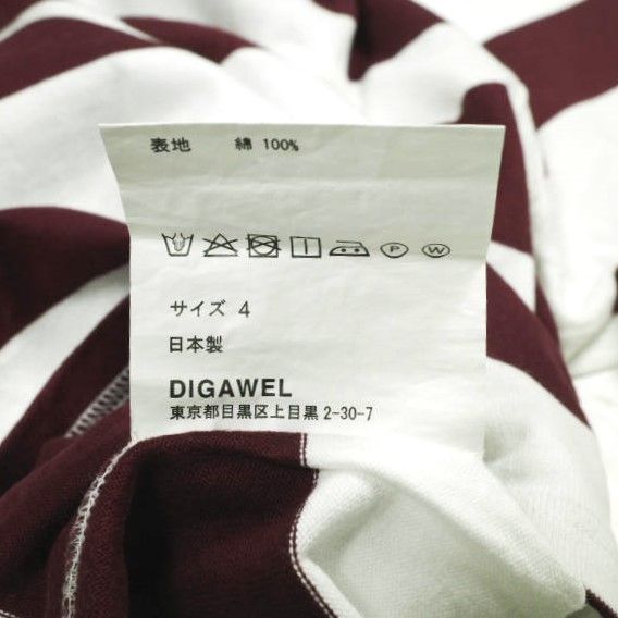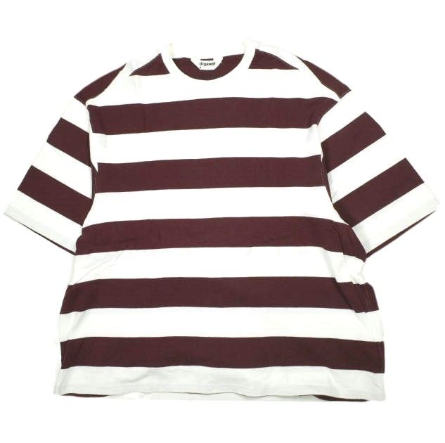 DIGAWEL x MIN-NANO ディガウェル ミンナノ 別注 日本製 BORDER タフコットン ワイドボーダーTシャツ 4 WHITE/BURGUNDY 半袖 トップス