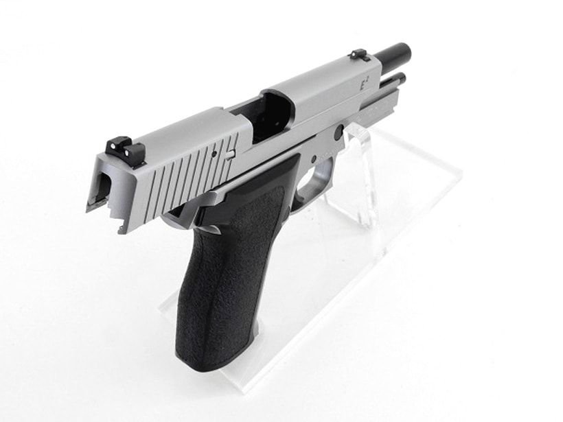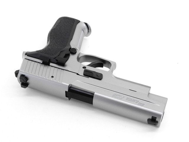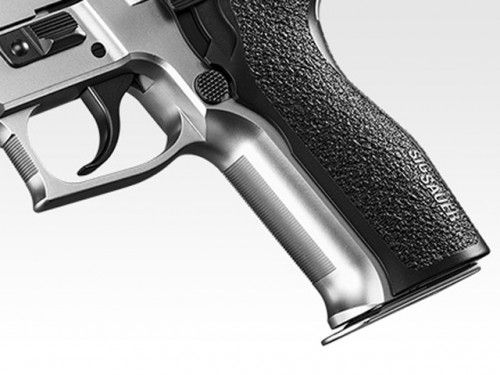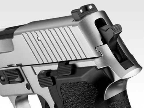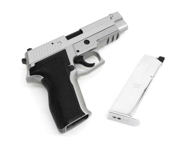 マットステンレス・フィニッシュのP226改良モデルスイスメイドならではの精巧なパーツと抜群の命中精度によって、多くのプロフェッショナルから絶大な支持をうけているP226。東京マルイでは、レイルを備えた「P226レイル」とその改良モデル「P226E2」に続き、スライドとフレームにステンレスシルバー・カラーを採用した「P226E2 ステンレスモデル」がラインナップに登場。ステンレス鋼ならではのひかえめな輝きや質感を表現したボディと、ブラックのアウターバレルやグリップパネルとのコントラストが目をひくモデルとなっています。店長のコメントロングセラーモデルのP226シリーズに上質な雰囲気を醸し出すステンレスモデルが新登場です!新品パッケージ内容P226 E2ステンレスモデル本体、マガジン(装弾数25発)、保護キャップ、取扱い注意・説明書、補足説明書、クリーニングロッド、他