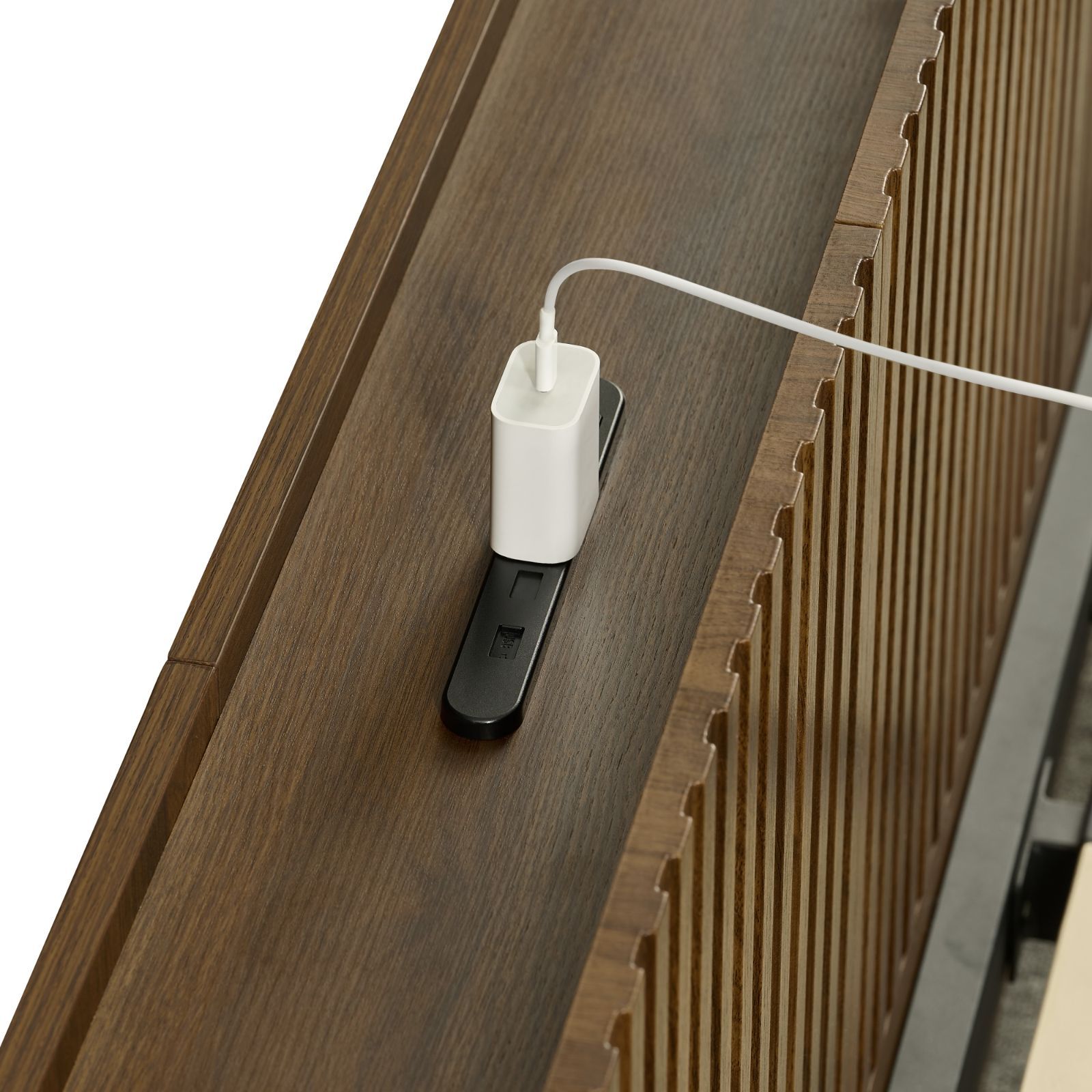 実用的なベッドヘッドには、小物を置くための便利な収納スペースがあります。携帯電話、書籍、眼鏡、コップ、目覚まし時計などを手軽に置くことができ、寝室をすっきりと整理できます。さらに、内蔵されたUSBポート(USBポート×1、2ピンコンセント×2)で、寝る前に手を伸ばすだけで充電可能。便利で安全に使用できます。