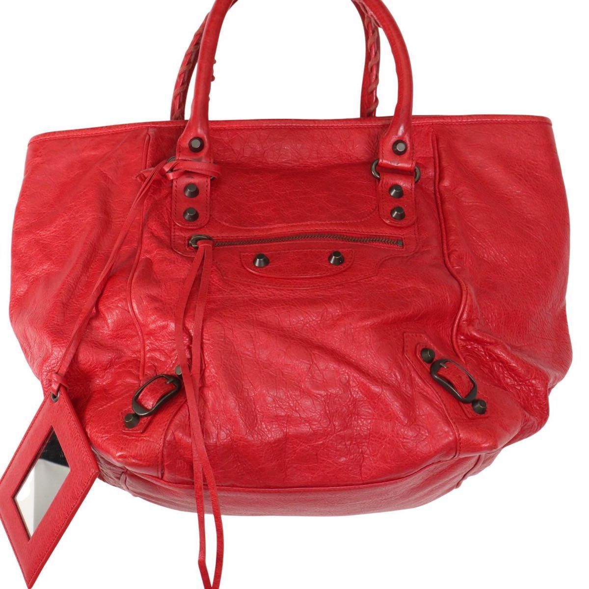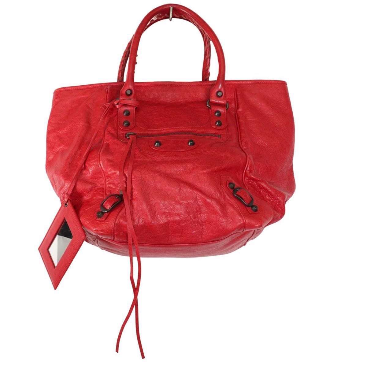 レザー レッド 大容量 ミラー付き 手提げ レディース 通勤通学 旅行 カジュアル タウンユース